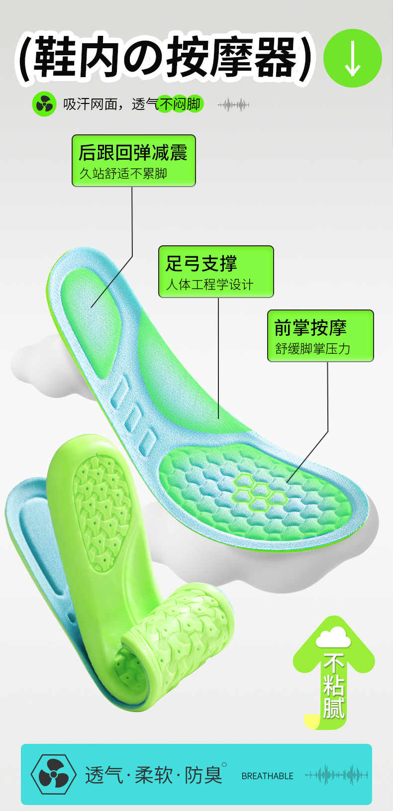 军训鞋垫夏季防臭吸汗男女按摩运动减震鞋垫高弹踩屎感久站不累