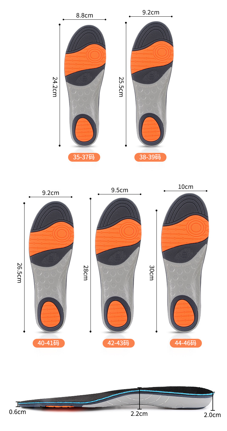 鞋垫成人运动鞋垫足弓支撑减震垫扁平足内外翻增高鞋垫