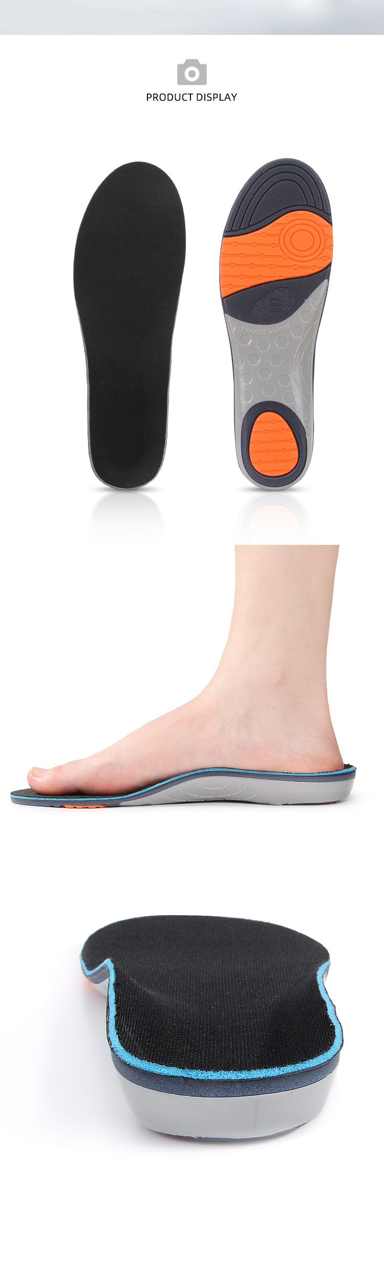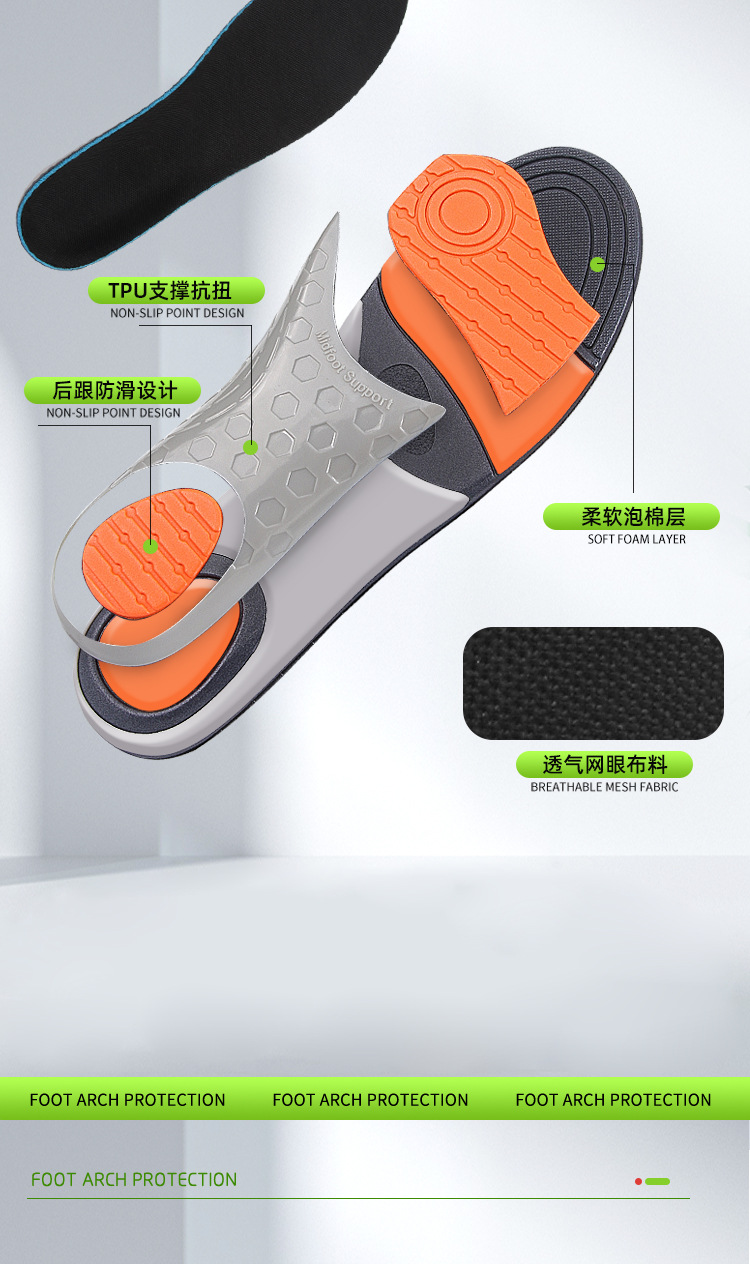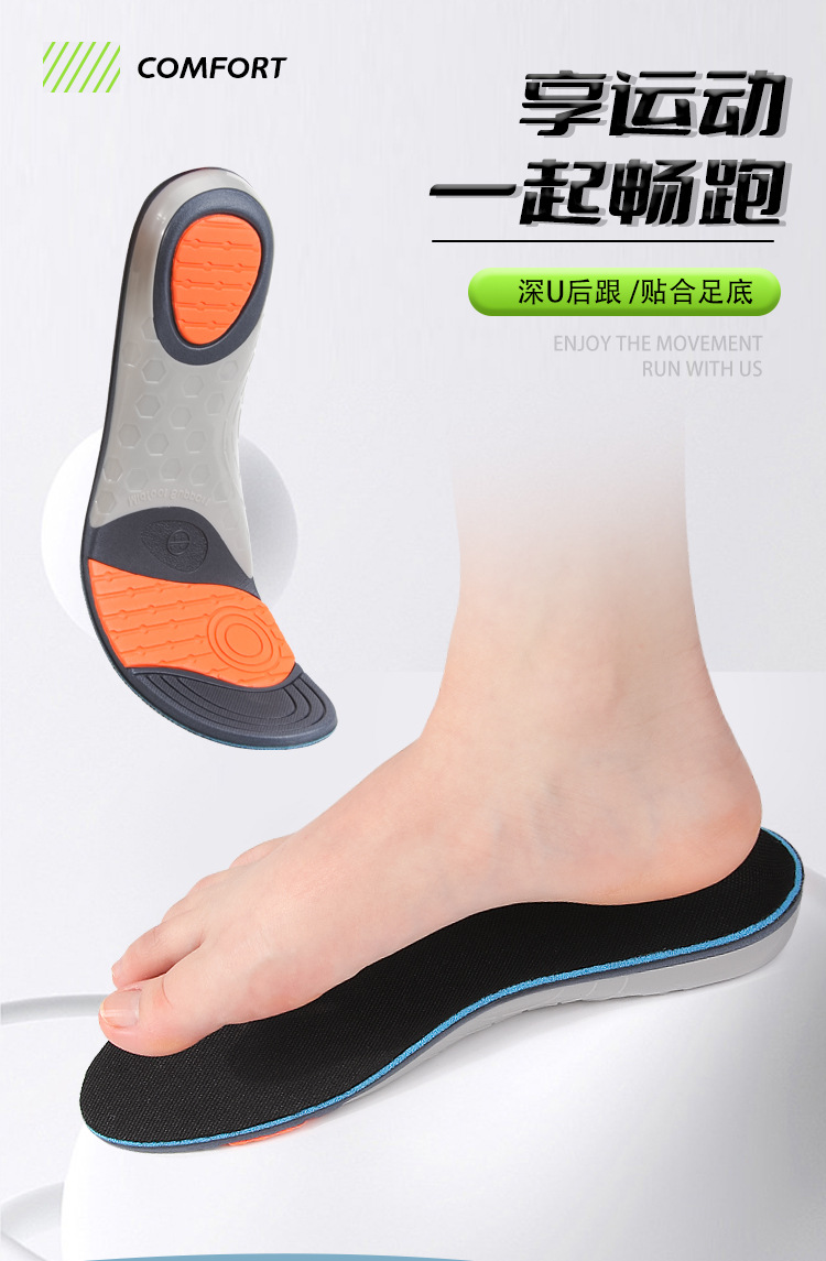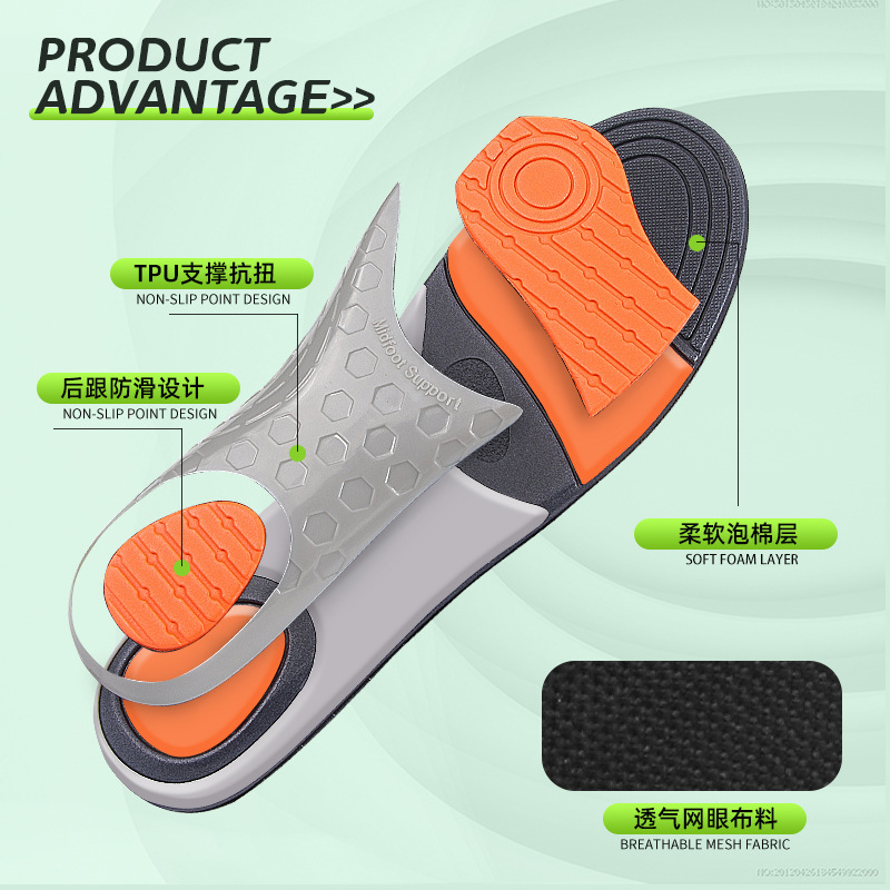 网布PU足弓全垫男女足弓扁平足矫形支撑减震足弓支撑鞋垫