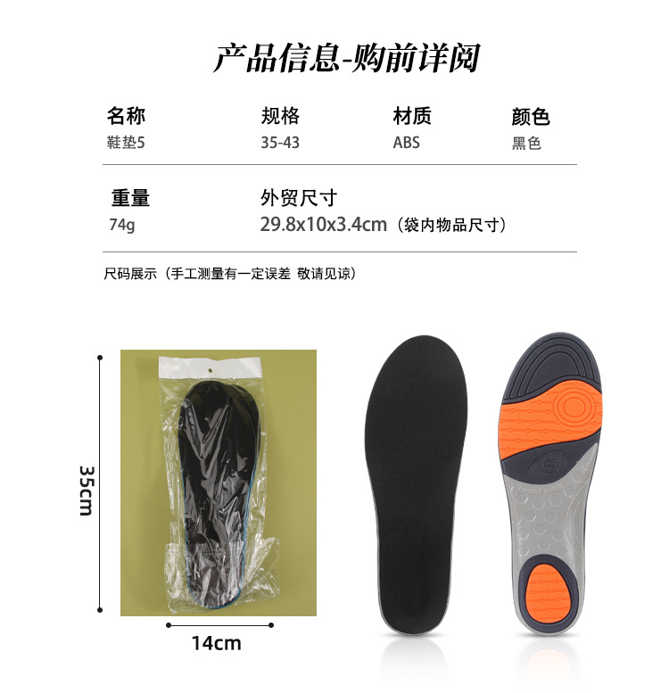 运动防臭吸汗踩屎感军训鞋垫久站不累脚加厚足弓按摩鞋垫