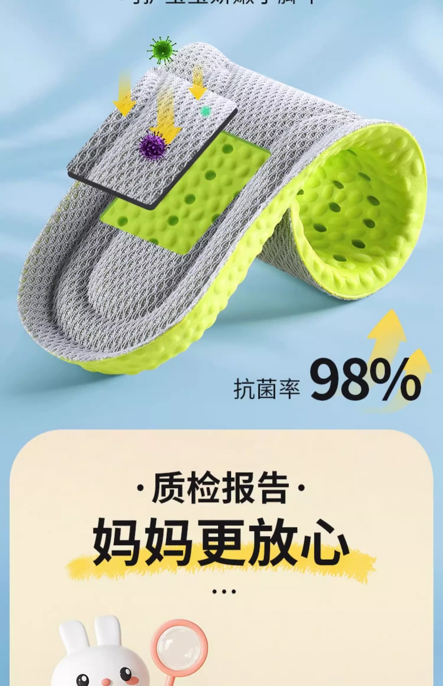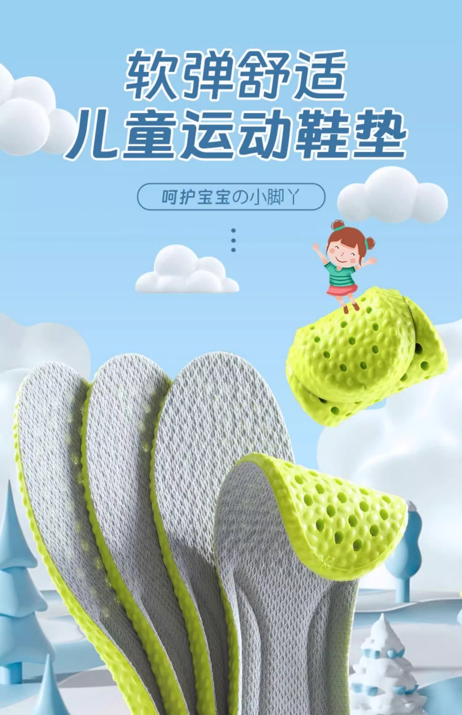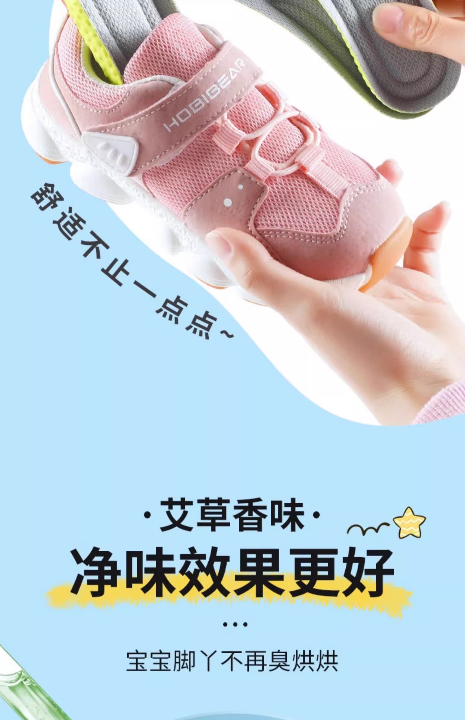 艾草除臭儿童鞋垫小孩专用透气吸汗防臭男童女童宝宝运动减震全垫