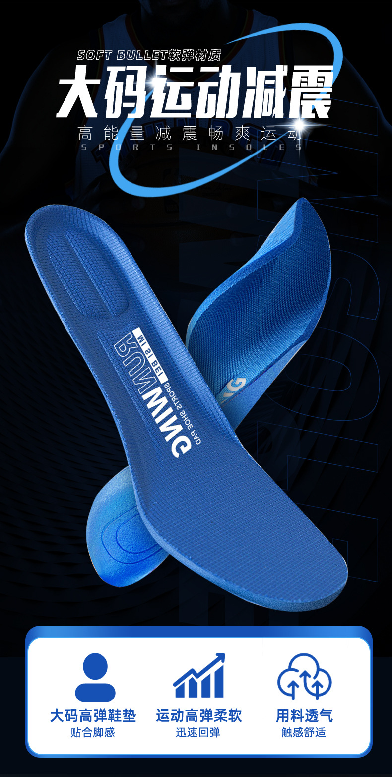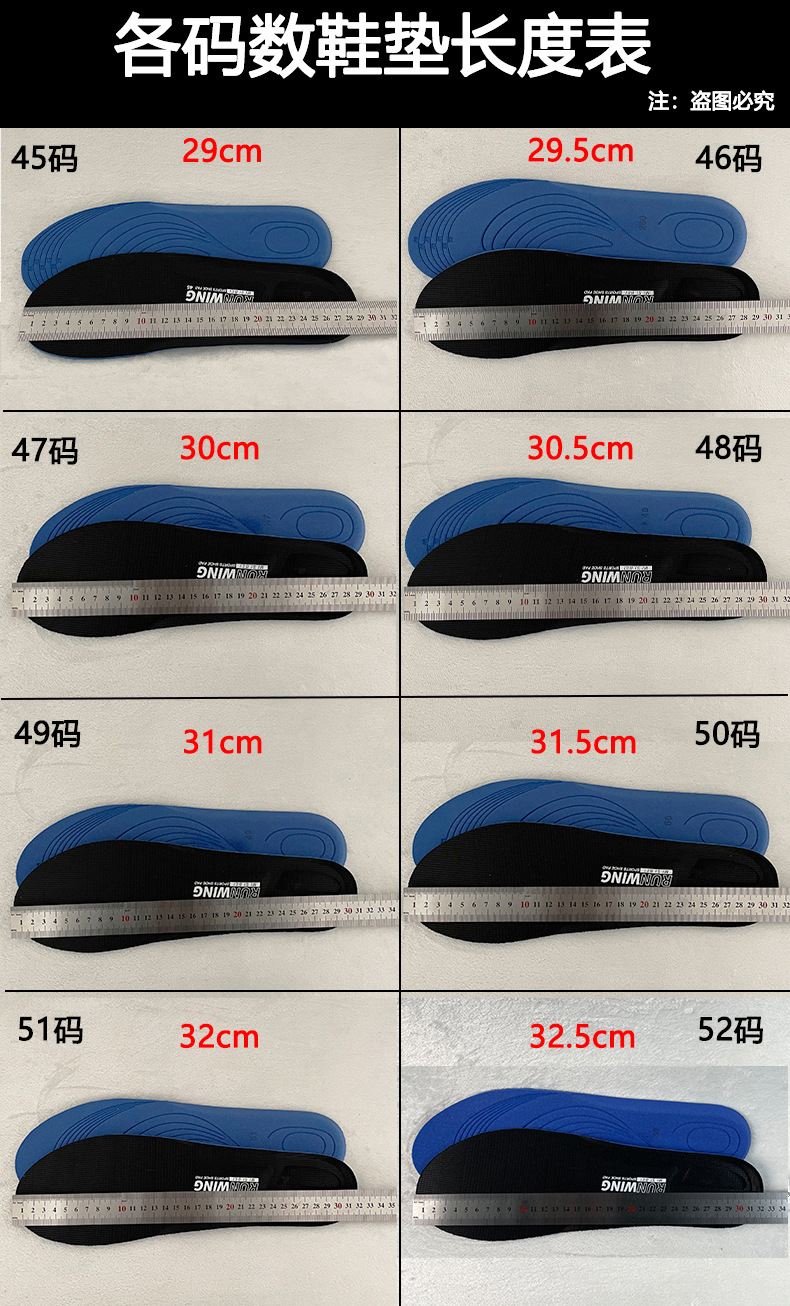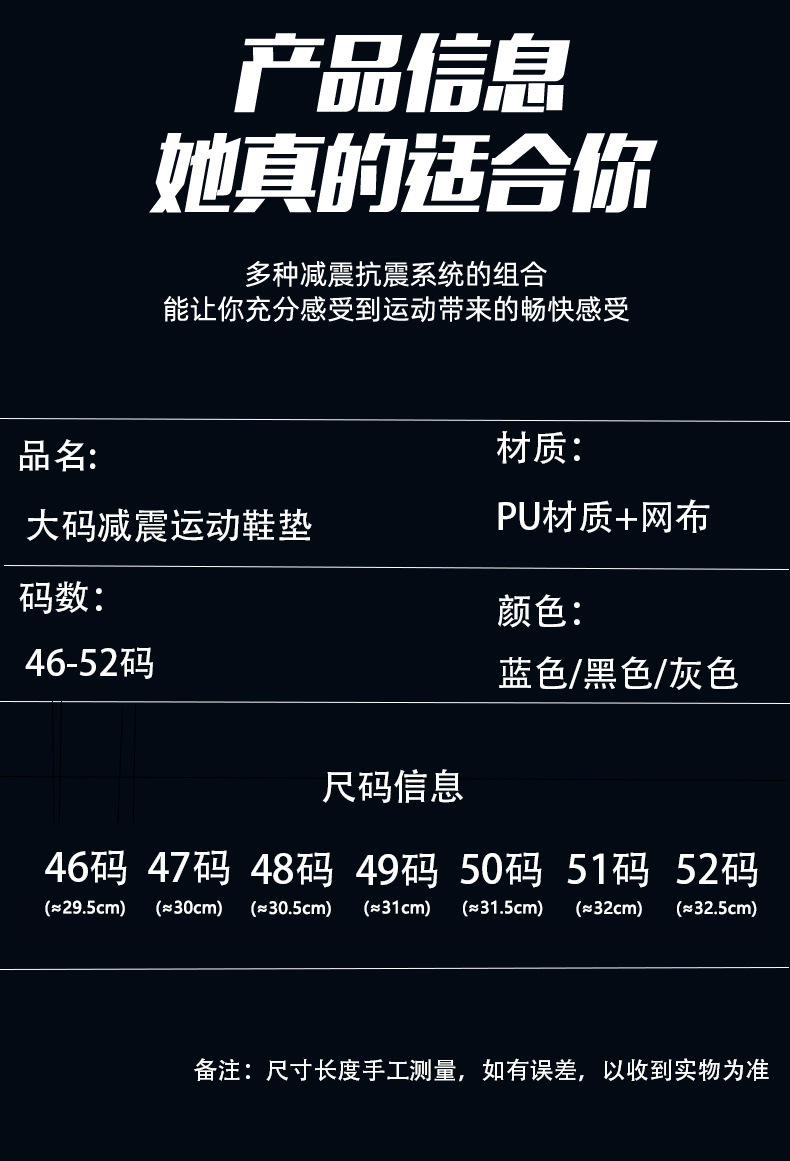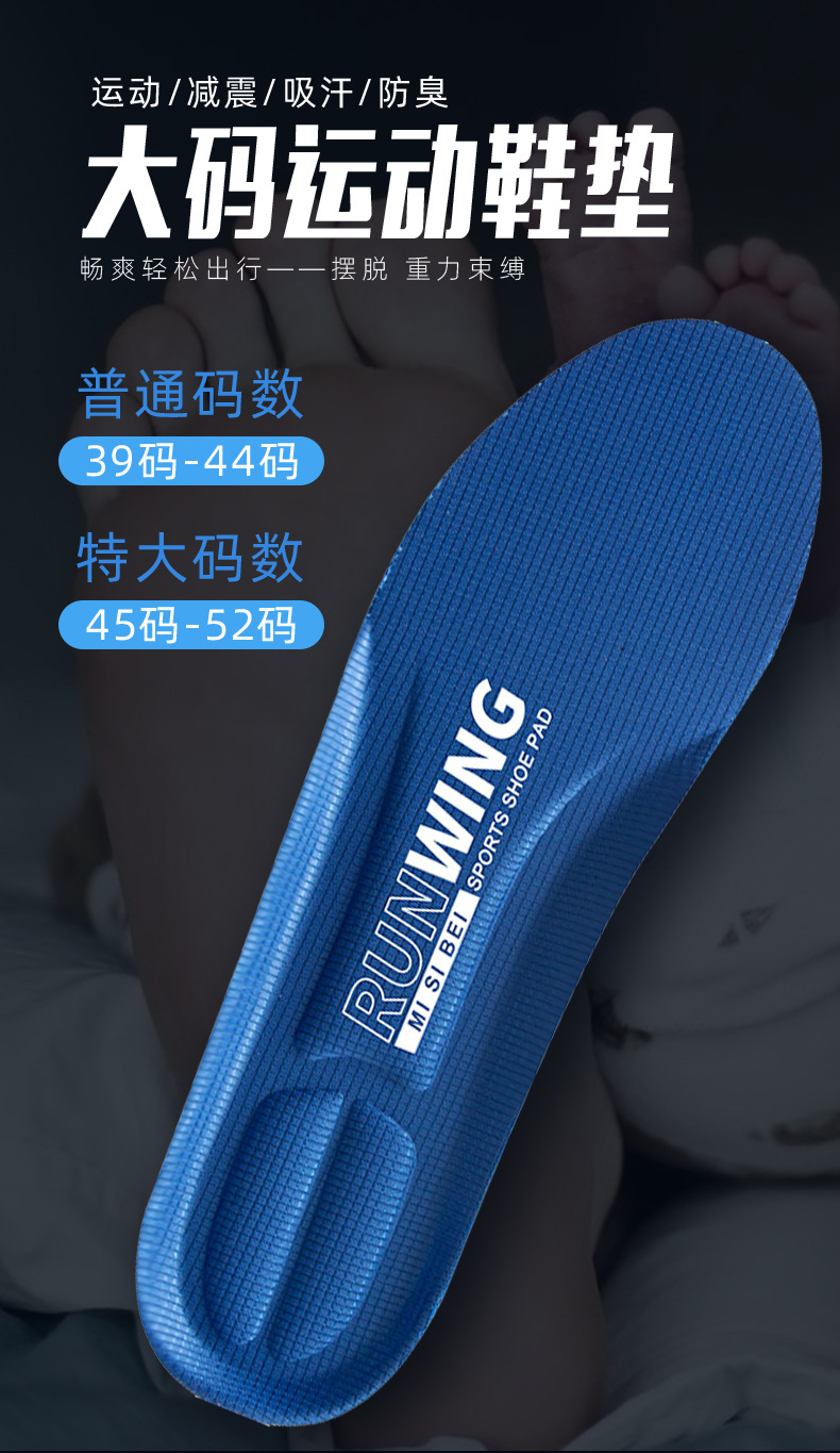 大码47男运动减震46加厚50软透气吸汗防臭特大号48码鞋垫