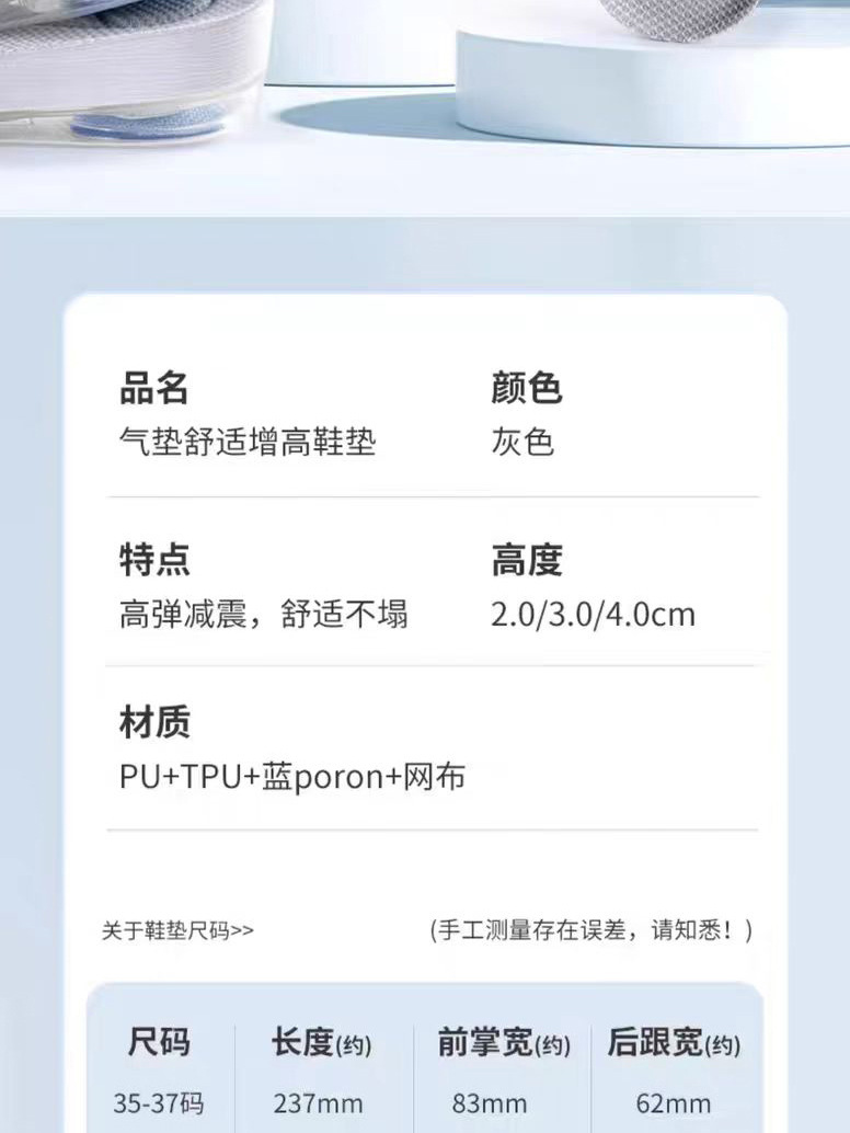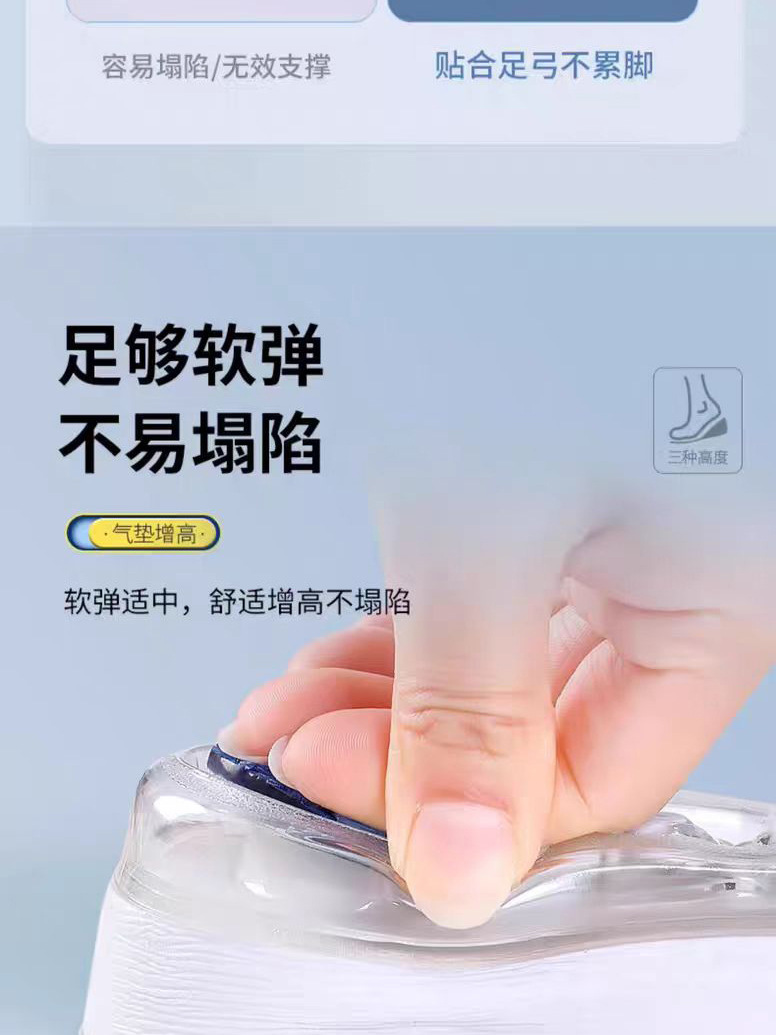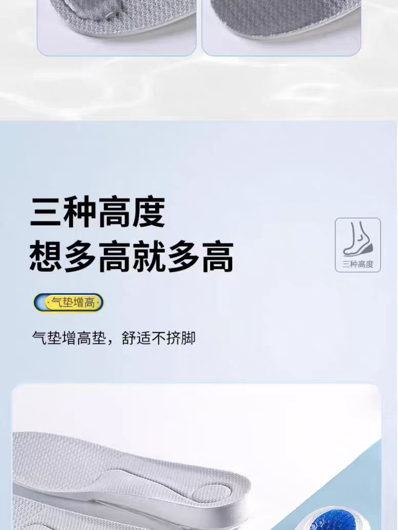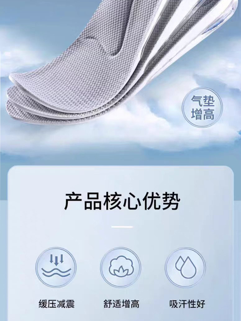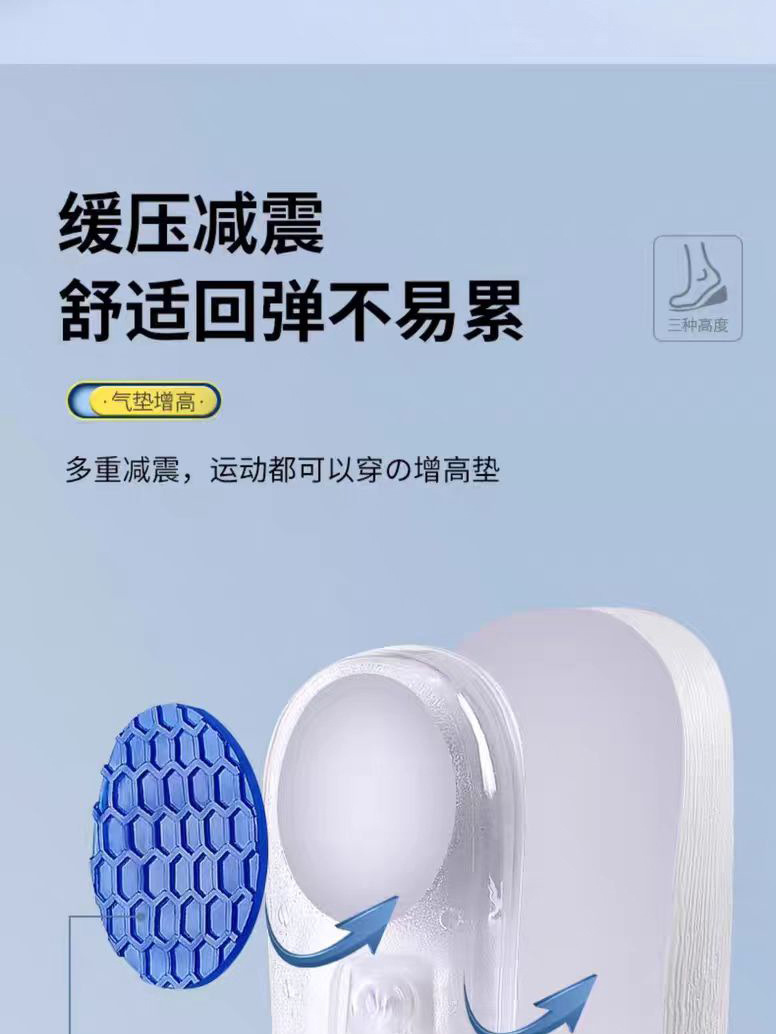 打球跑步运动增高鞋垫气垫减震男女全掌气囊回弹防臭久站不累防滑
