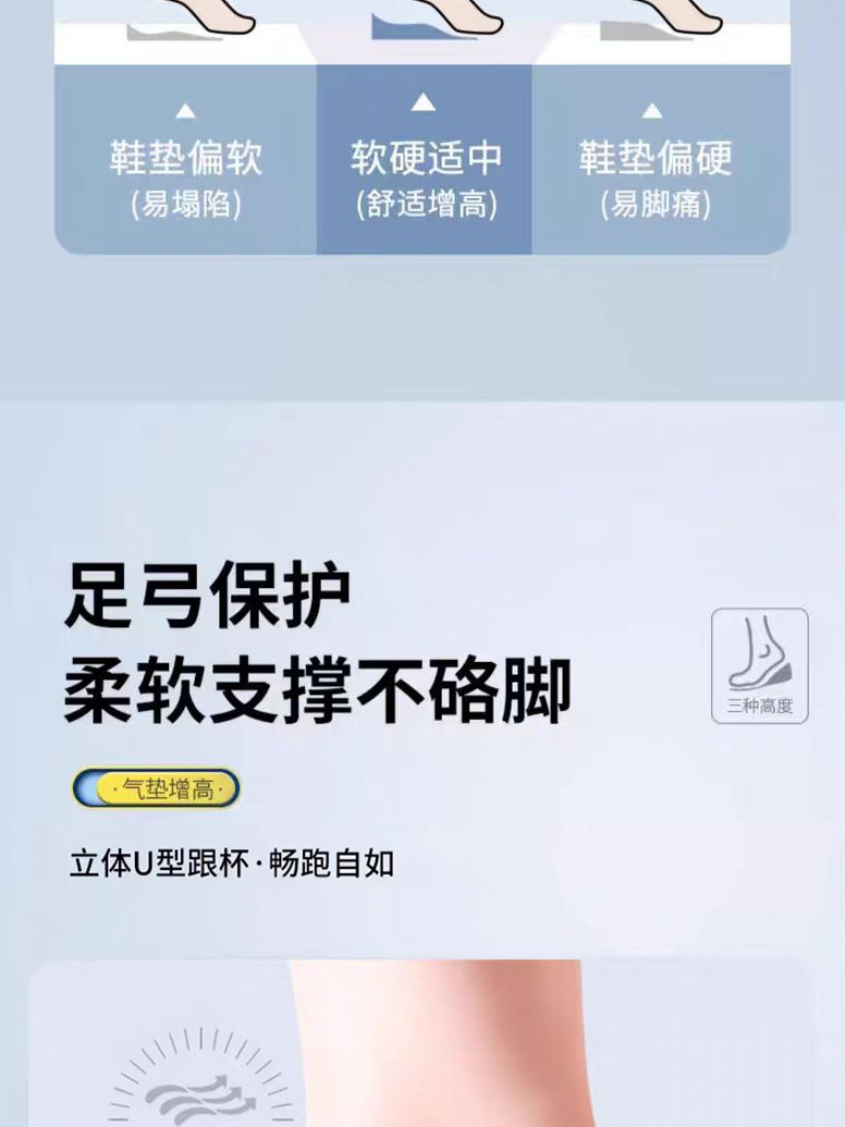 boost内增高鞋垫男女隐形运动减震不累脚透气吸汗非防臭aj1增高垫