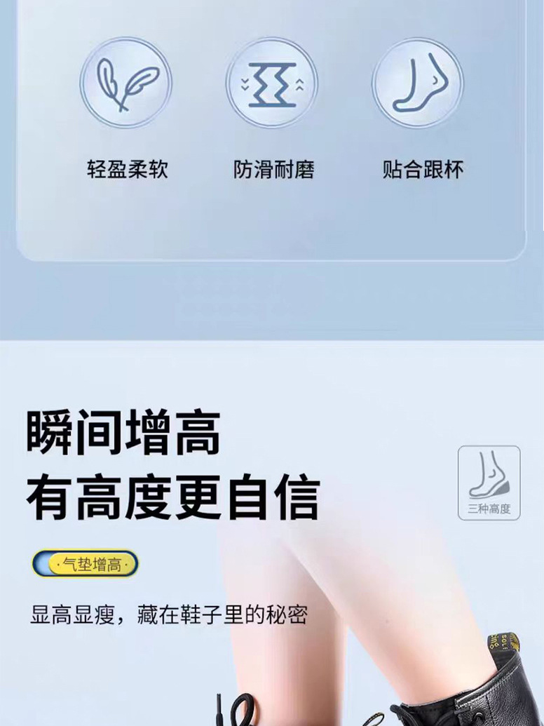 增高鞋垫女士不累脚隐形内增高吸汗防臭运动减震马丁靴增高神器