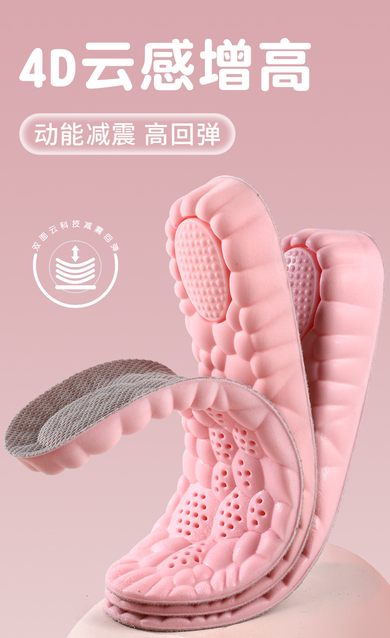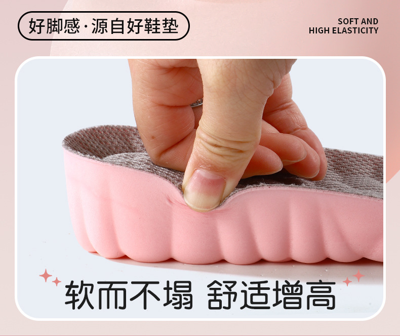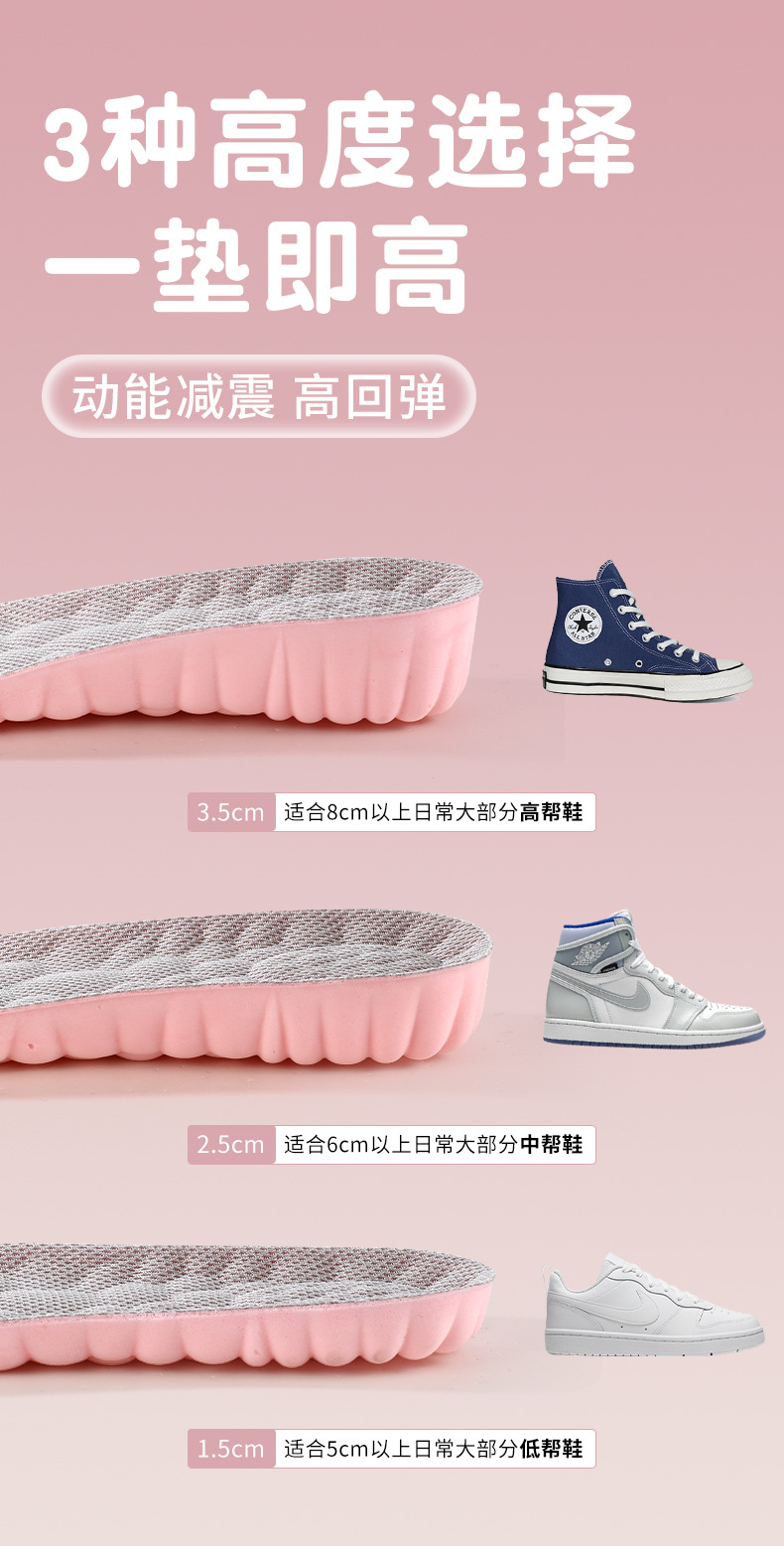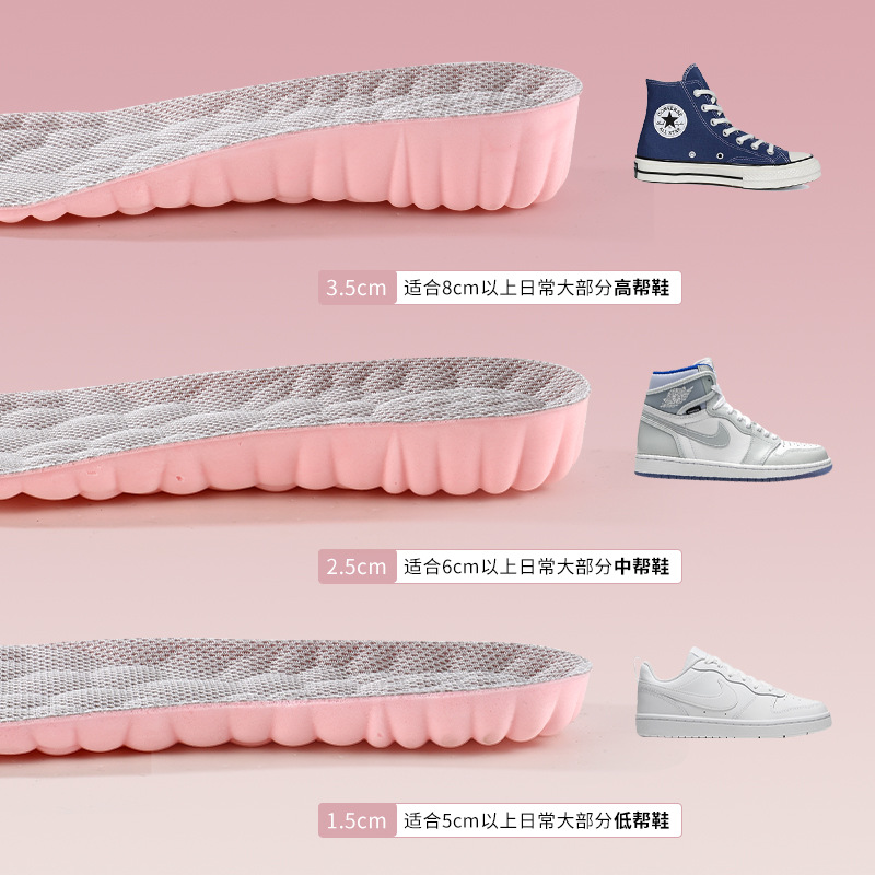 女士内增高鞋垫隐形踩屎感高弹减震透气吸汗防臭抑菌小白鞋休闲鞋