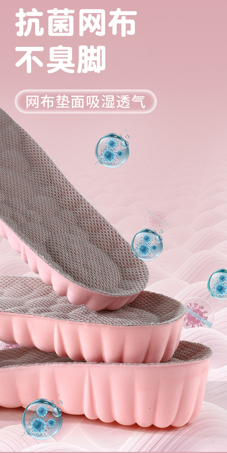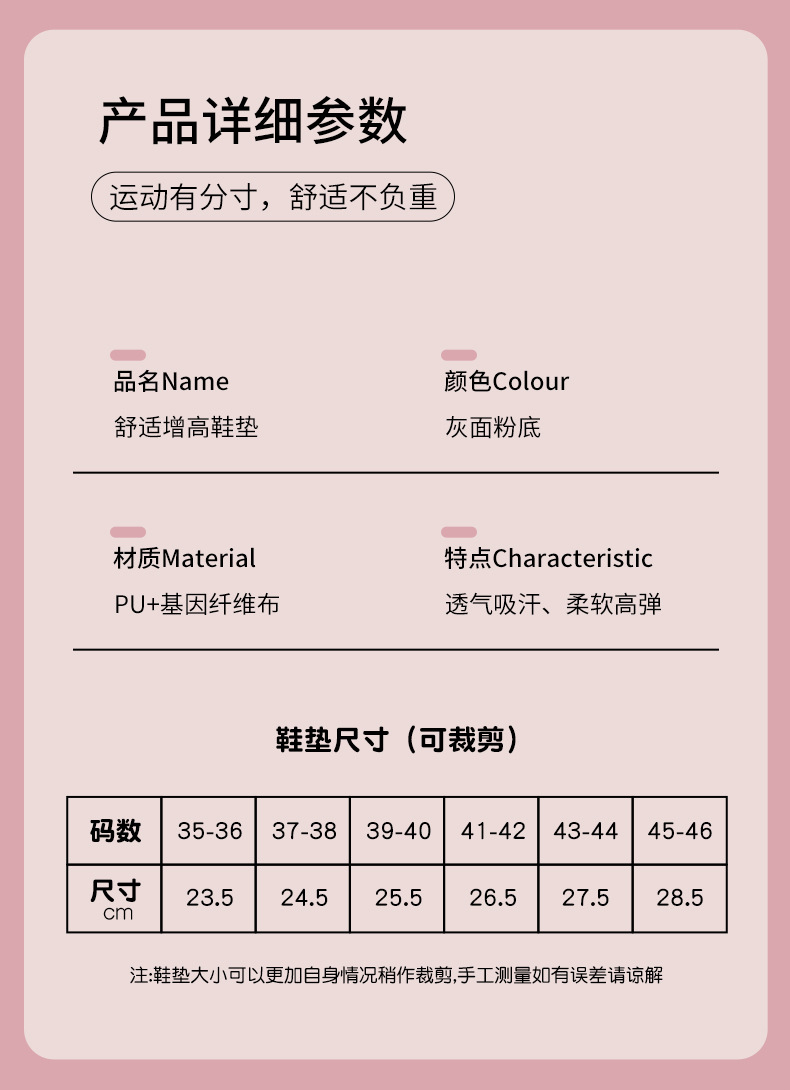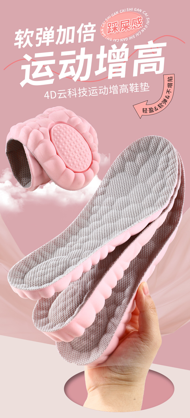女士内增高鞋垫隐形踩屎感高弹减震透气吸汗防臭抑菌小白鞋休闲鞋