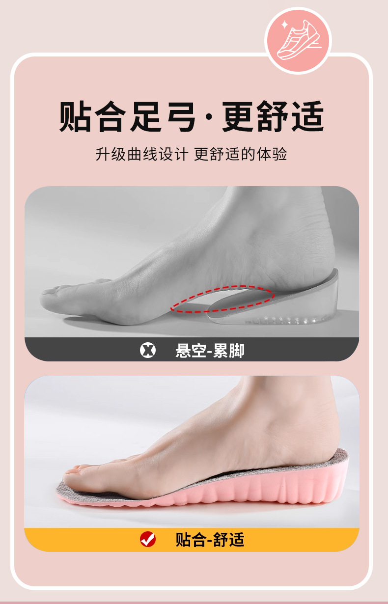 足弓支撑内增高鞋垫神器男女士隐形软底运动减震军训不累脚七分垫