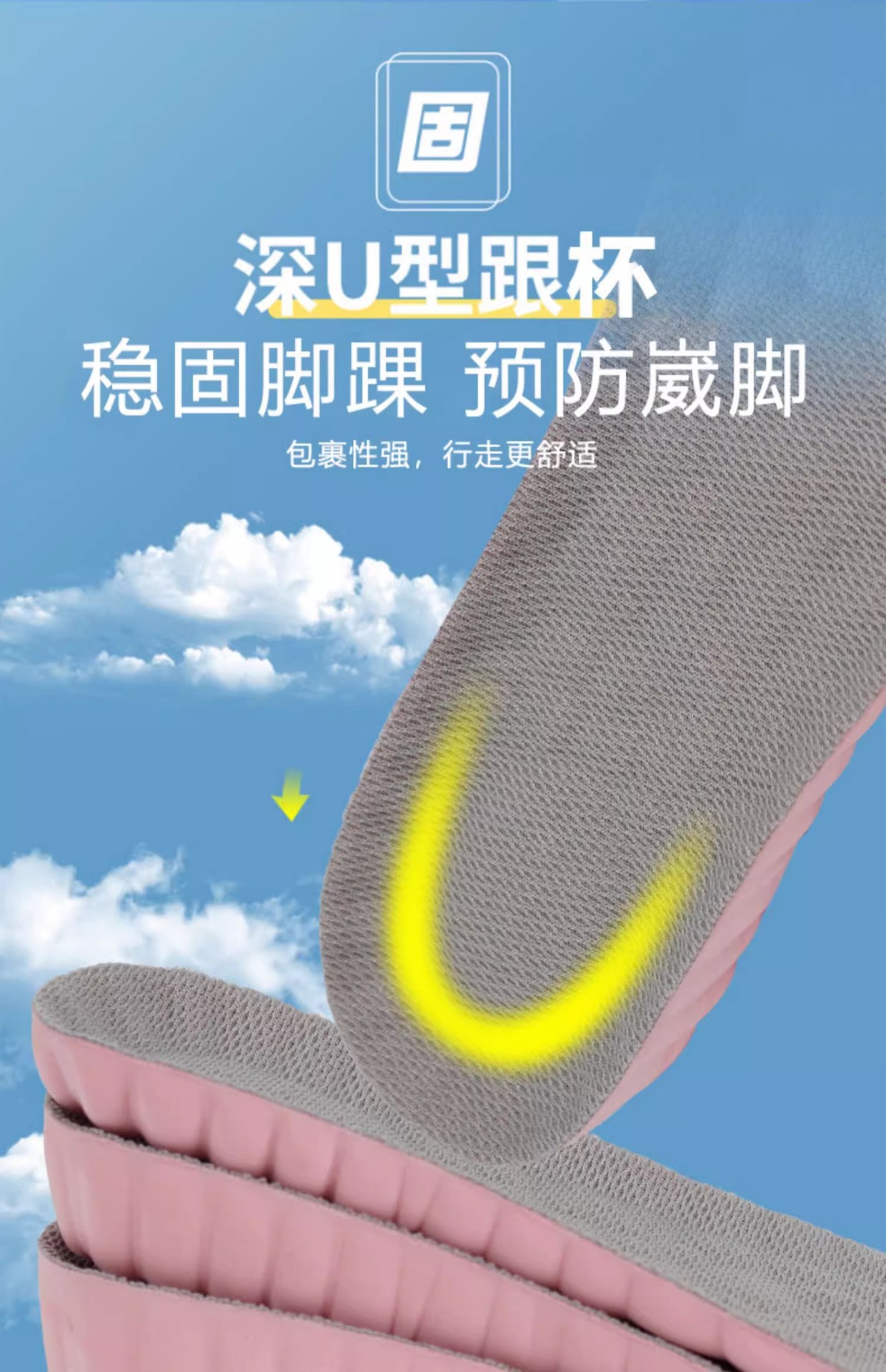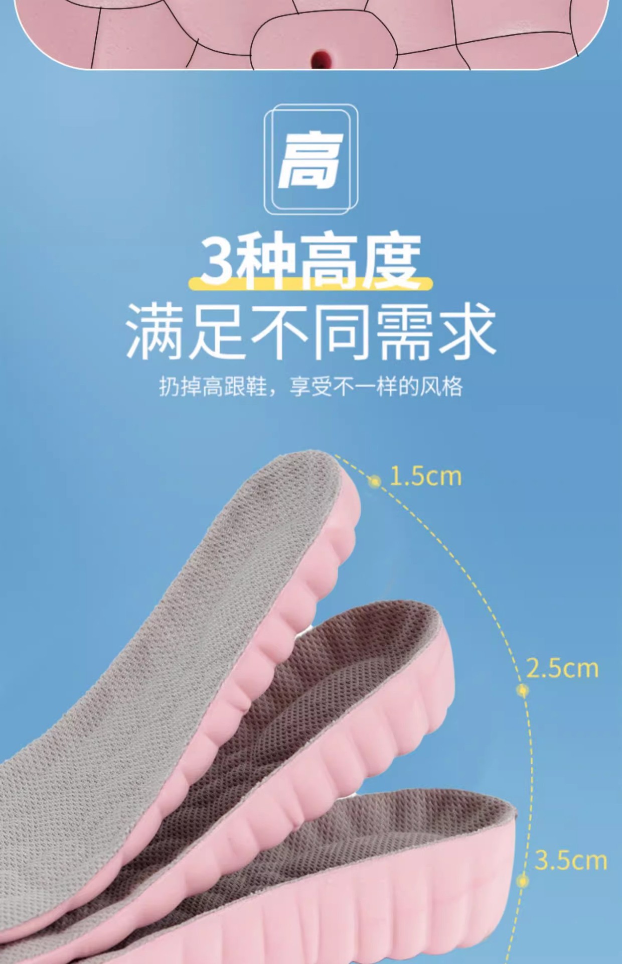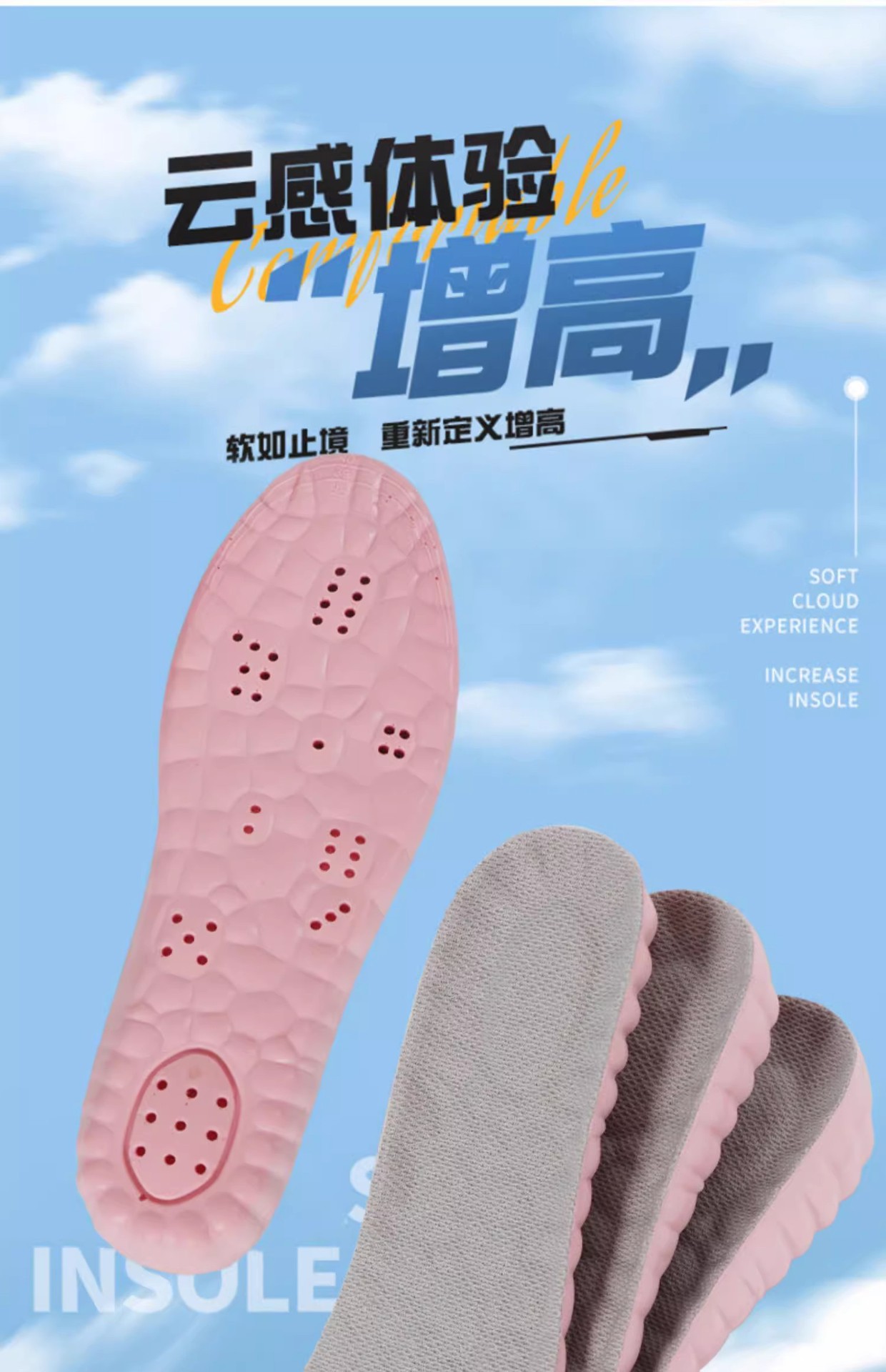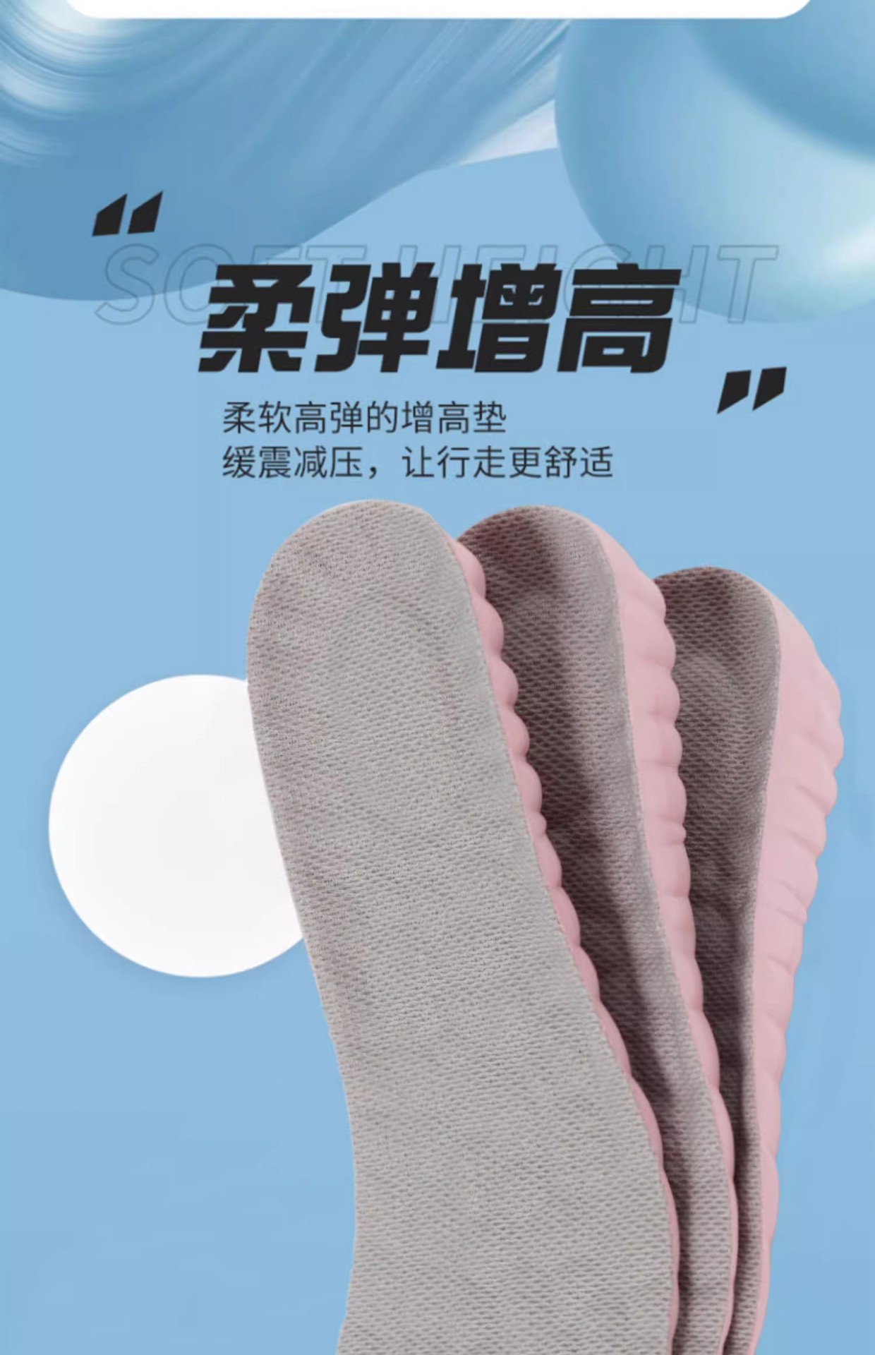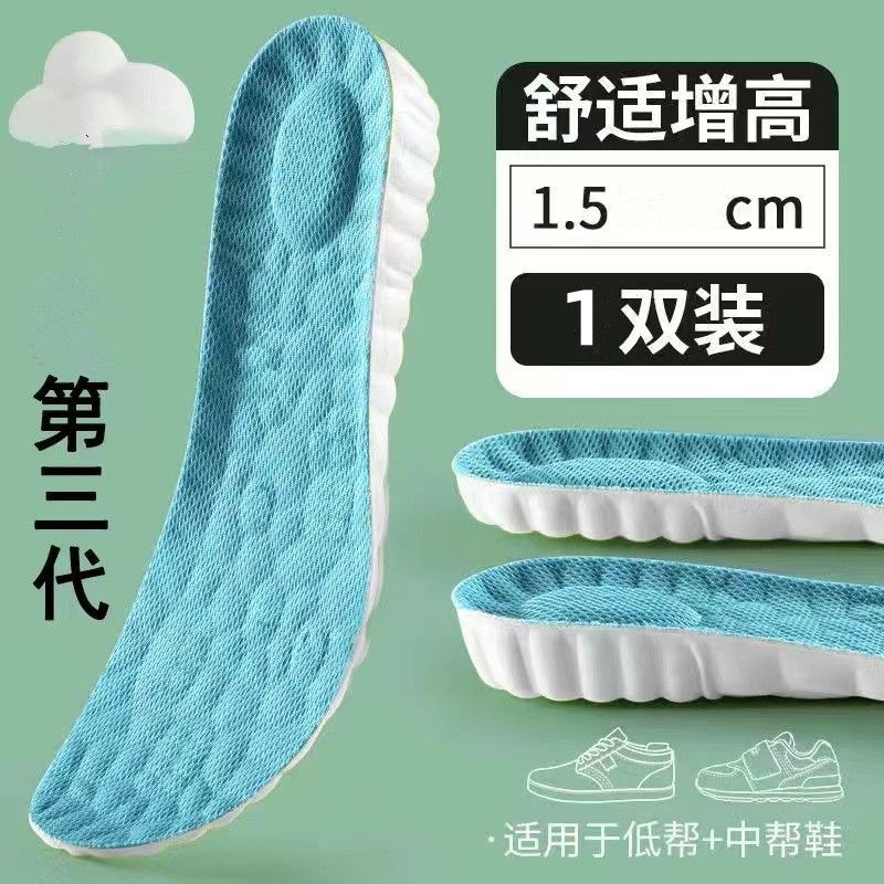 翀益艾草防臭弹性鞋垫男士不累脚隐形内增高女运动减震增高垫