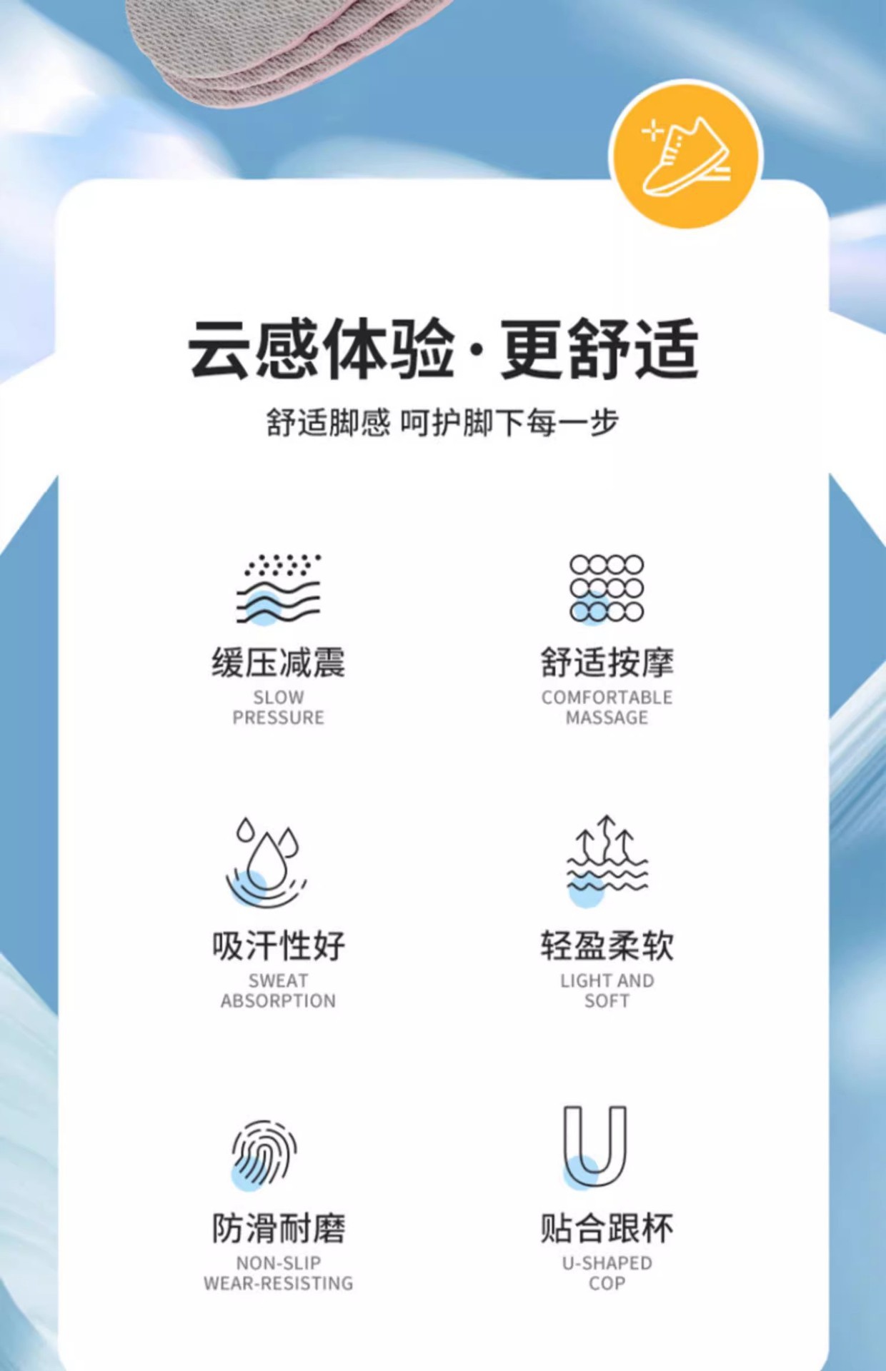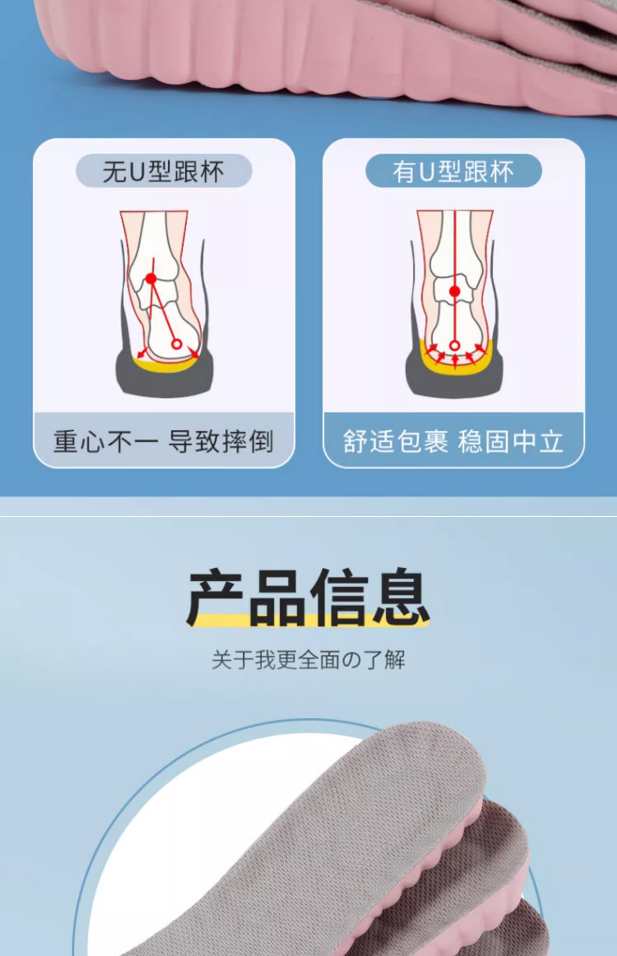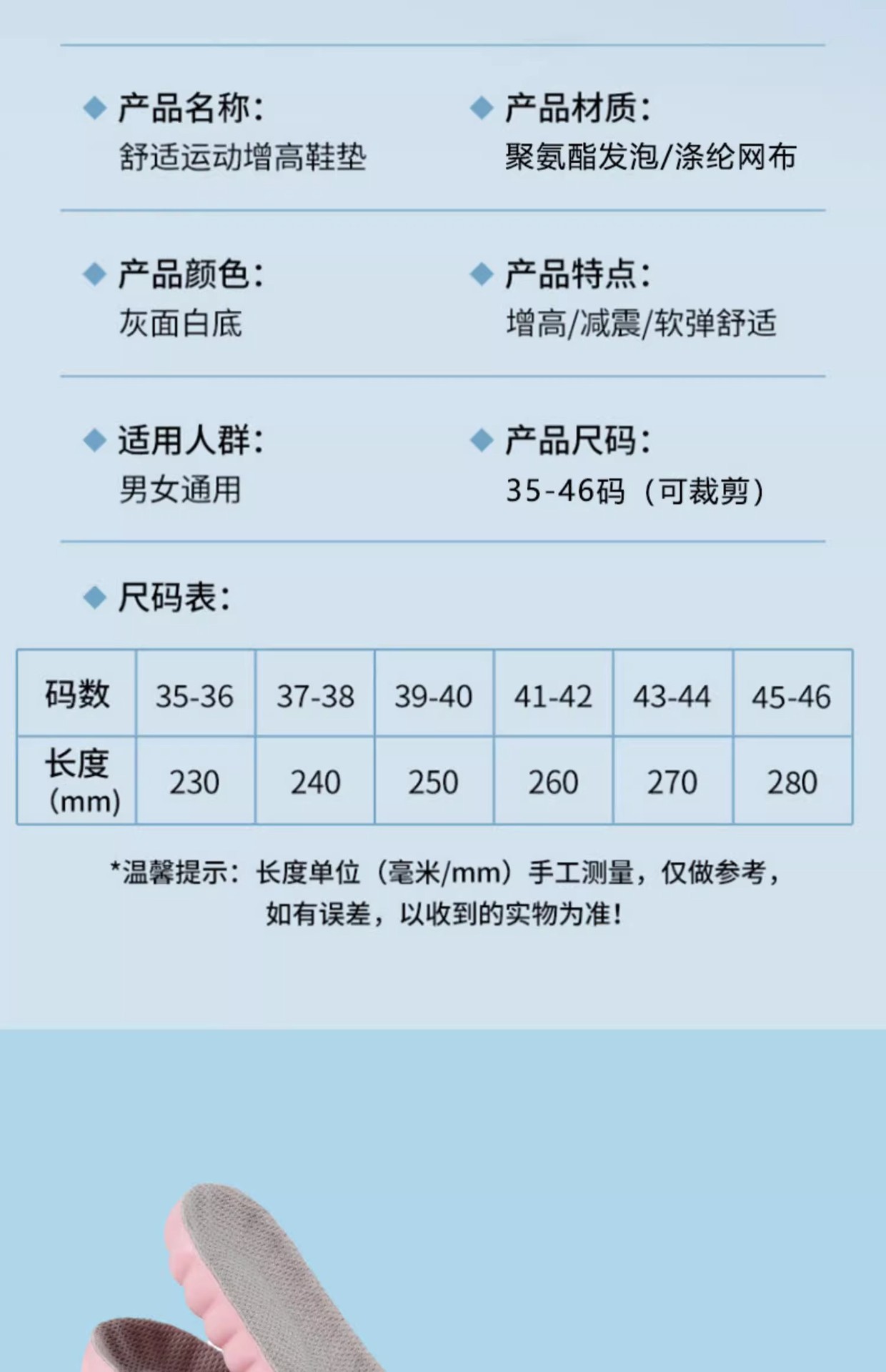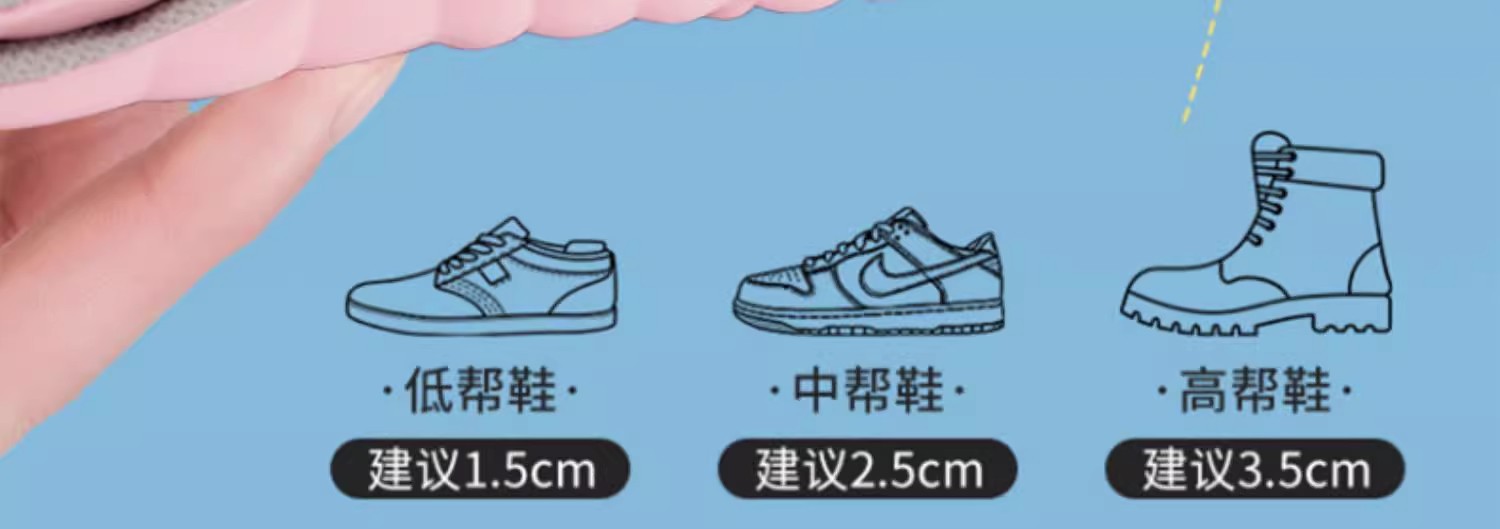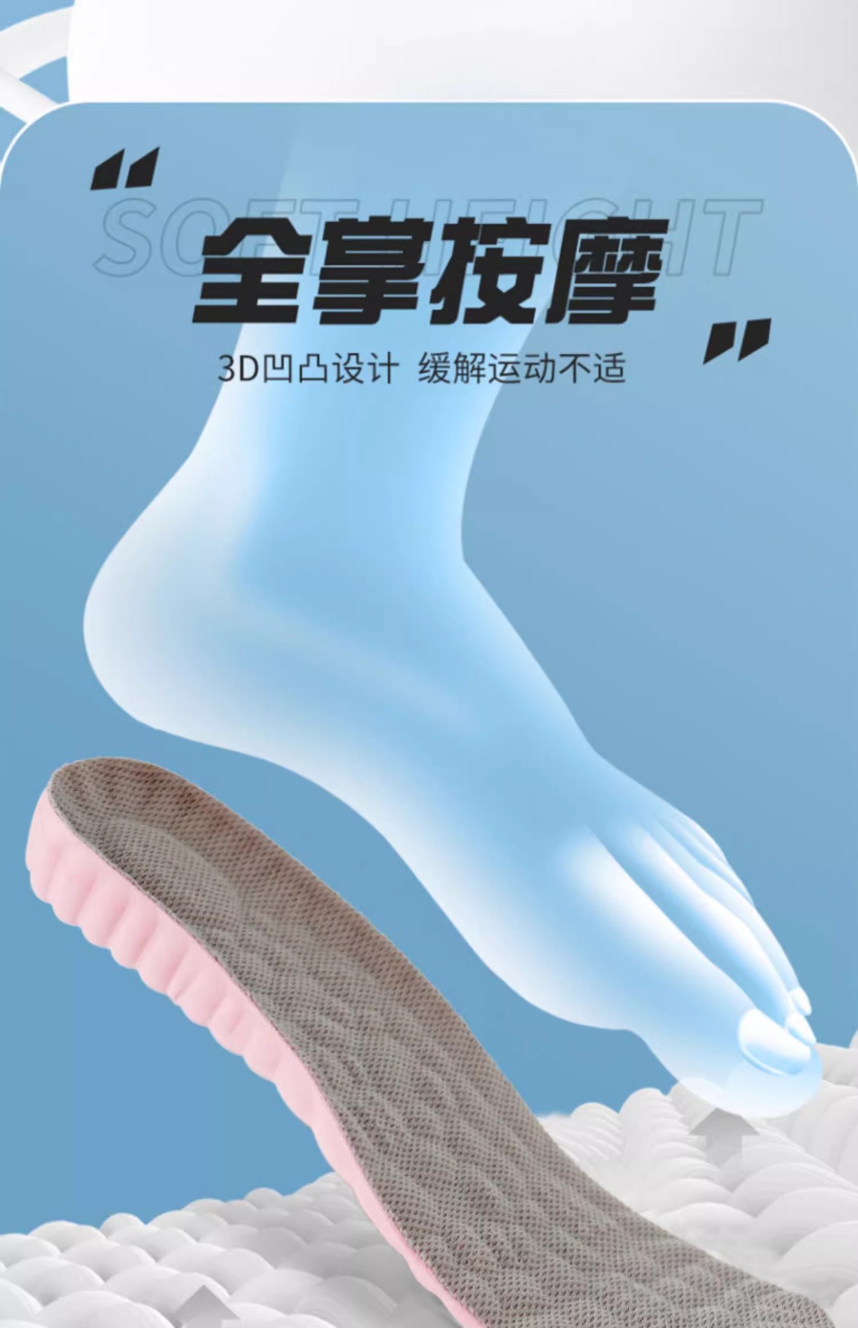 翀益艾草防臭弹性鞋垫男士不累脚隐形内增高女运动减震增高垫