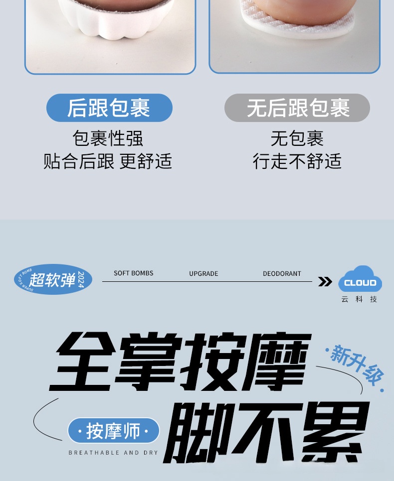 鞋垫运动气垫减震军训吸汗透气防臭软底舒适踩屎感足弓男款加厚女