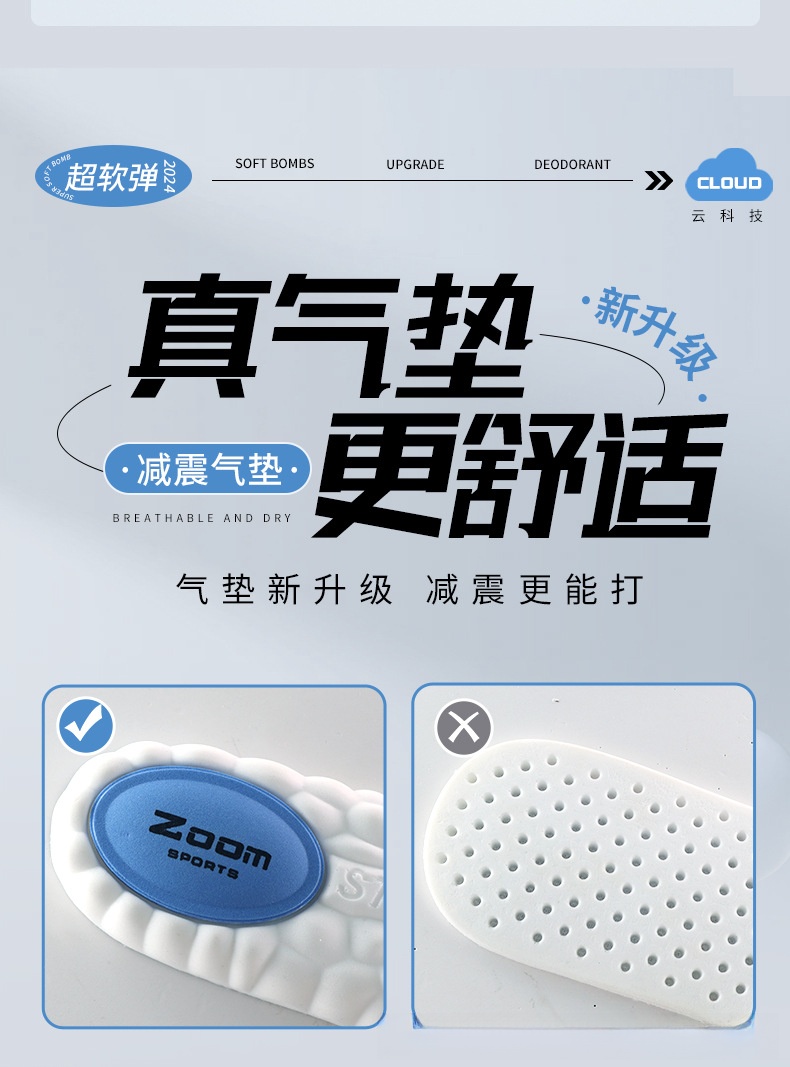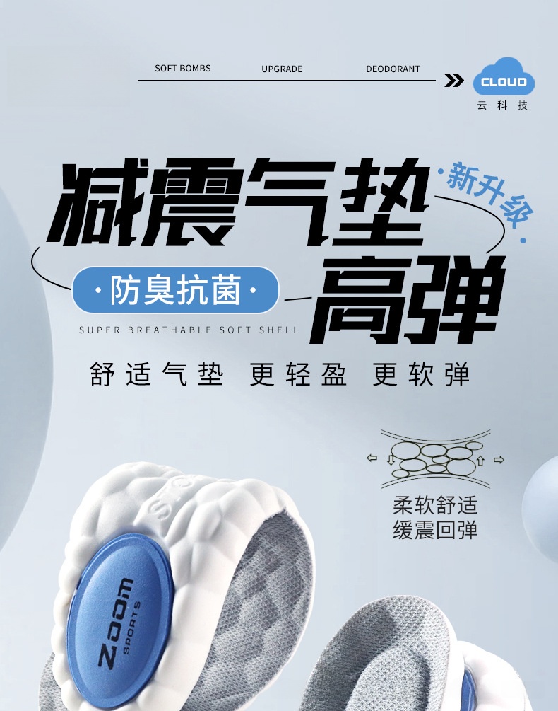 运动鞋垫高弹力减震吸汗防臭舒适爆米EVA球鞋垫zoom久站不累神器