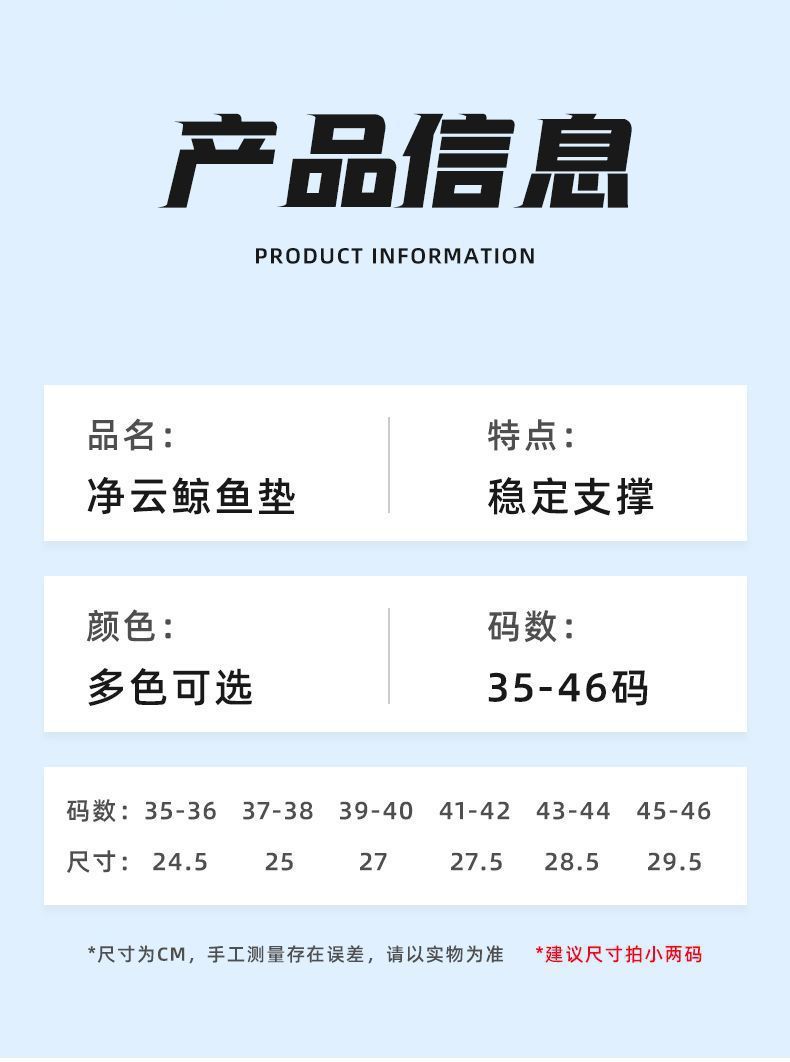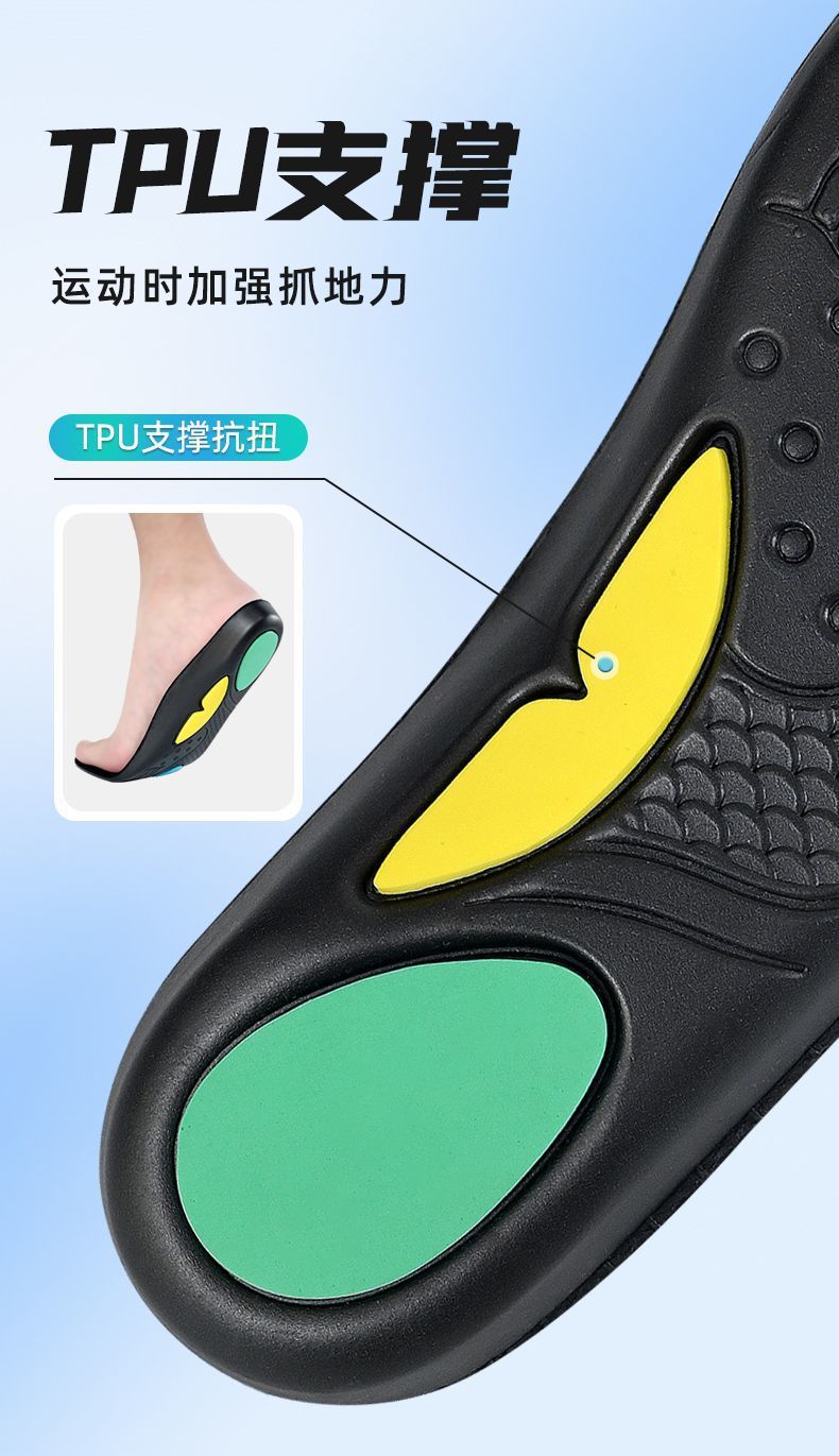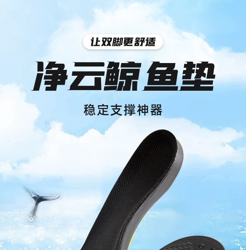 鲸鱼足底运动回弹缓震足弓支撑鞋垫久吸汗鞋垫TPU站荀哥PORON不累