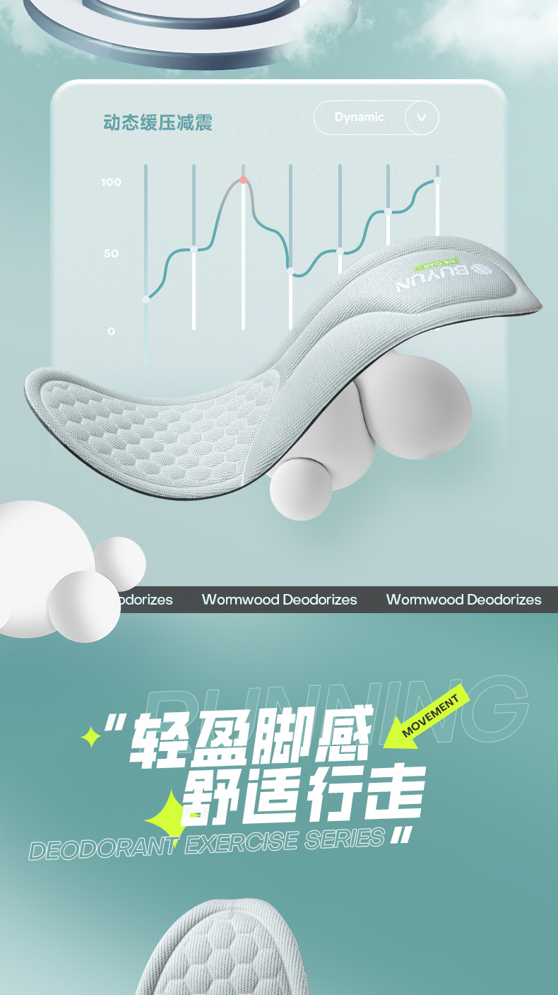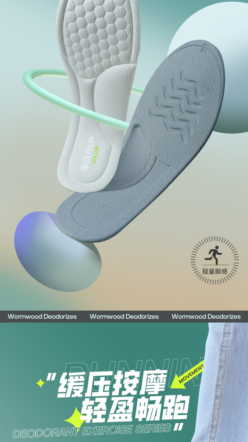 步云鞋垫除臭吸汗透气舒适防滑软底运动男士按摩鞋垫女