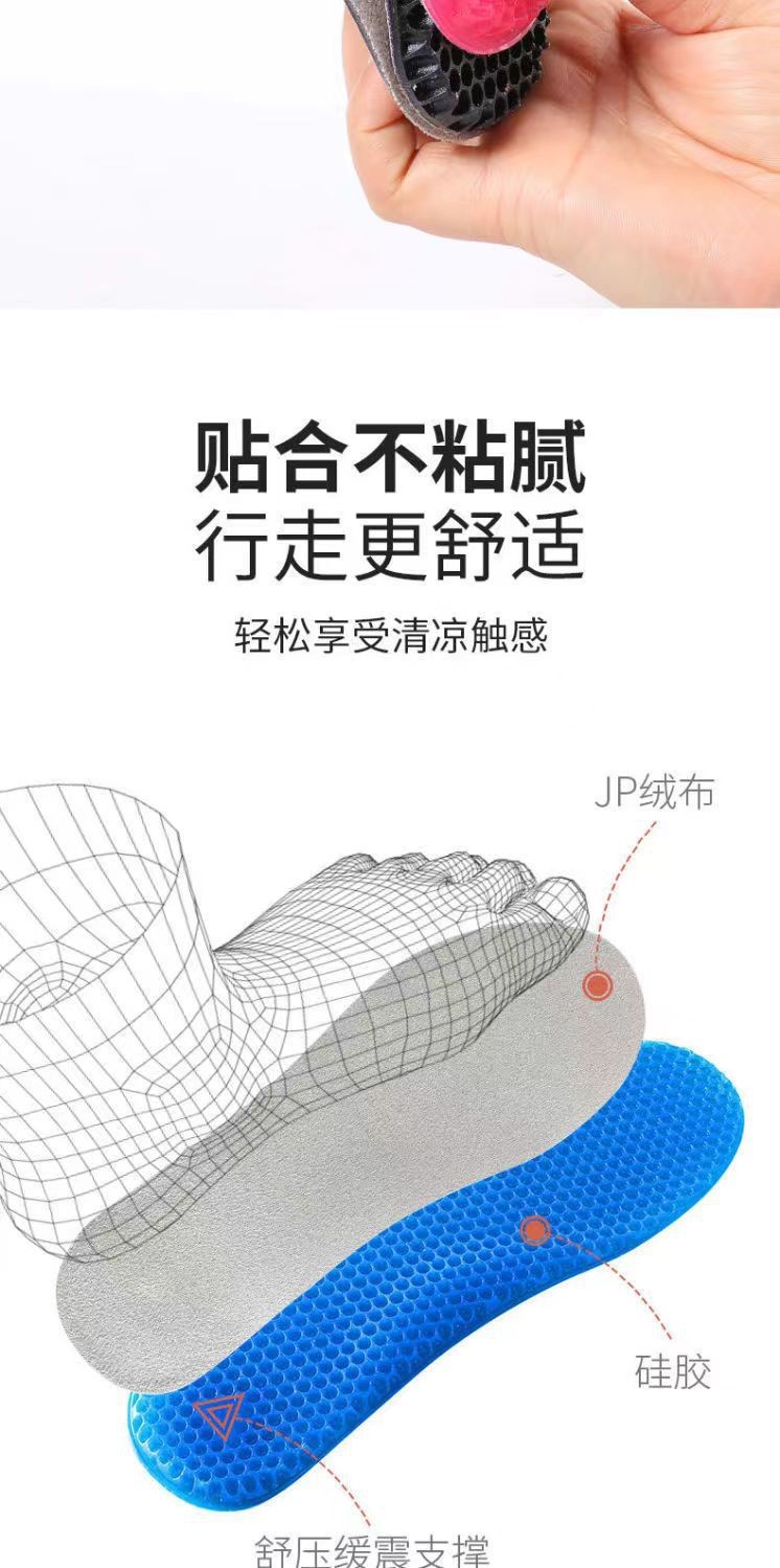 男款女款硅胶鞋垫蜂窝踩屎感运动鞋垫柔软减震防滑透气军训鞋垫