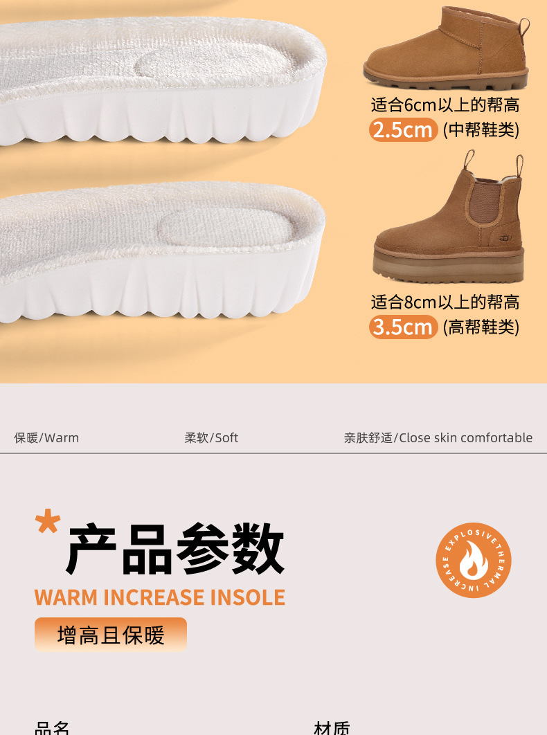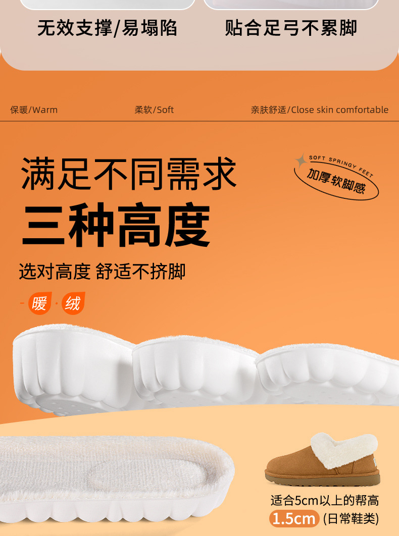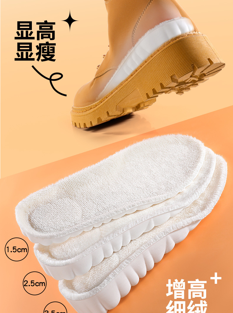 保暖增高鞋垫女不累脚隐形冬季加绒加厚软底舒适男款内增高垫