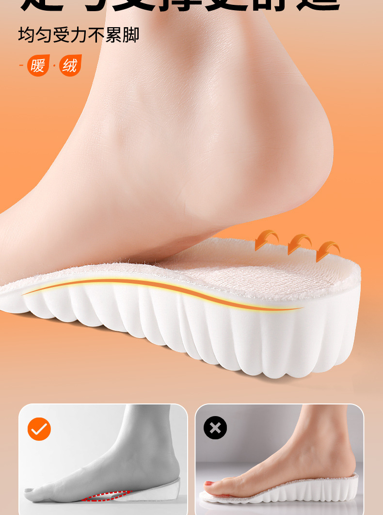 男女内增高鞋垫隐形不累脚足弓支撑增高鞋垫不塌陷七分半垫内增高