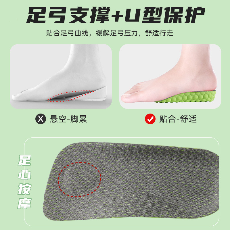按摩增高鞋垫男士女隐形半垫足弓支撑久站不累透气七分内增高鞋垫