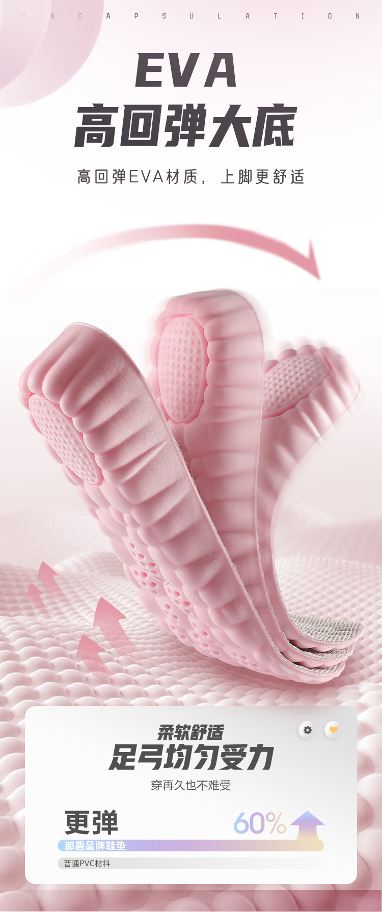 4D云朵增高鞋垫抑菌防臭透气吸汗软弹减震舒适不累脚久站不塌男女