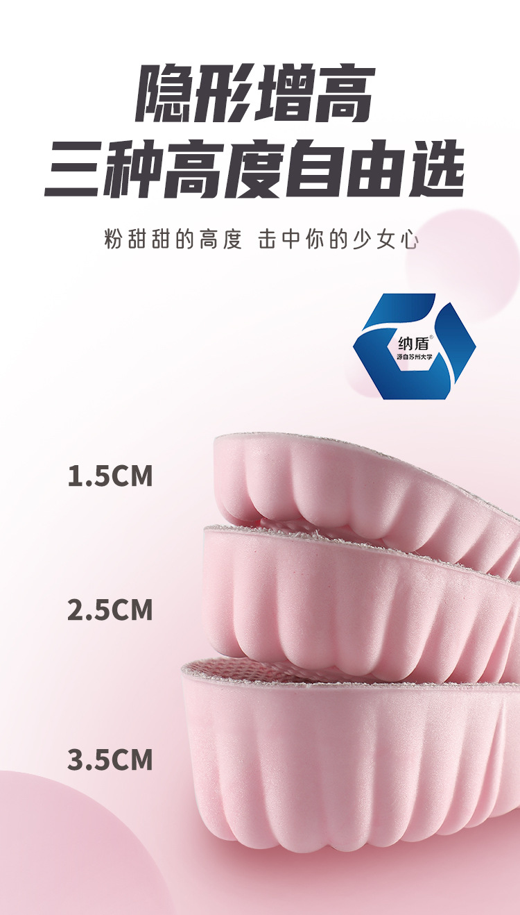 老宋爆米粒运动气垫增高鞋垫回弹减震增高垫透气隐形内增高鞋垫