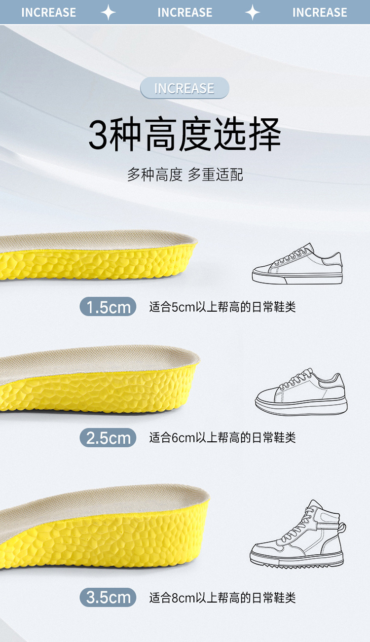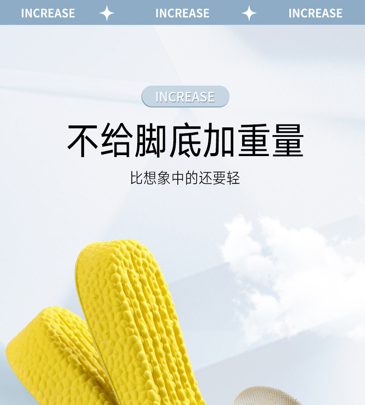 鑫养道云朵除臭增高鞋垫男吸汗防臭运动减震隐形防痛女内增高鞋垫