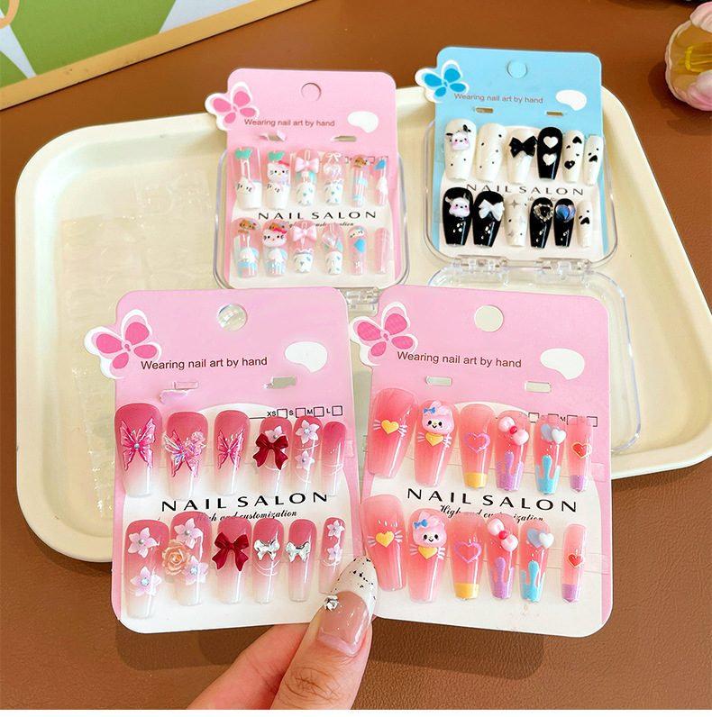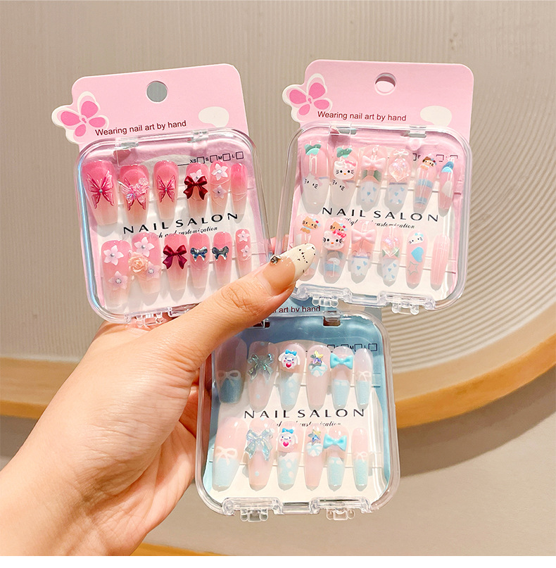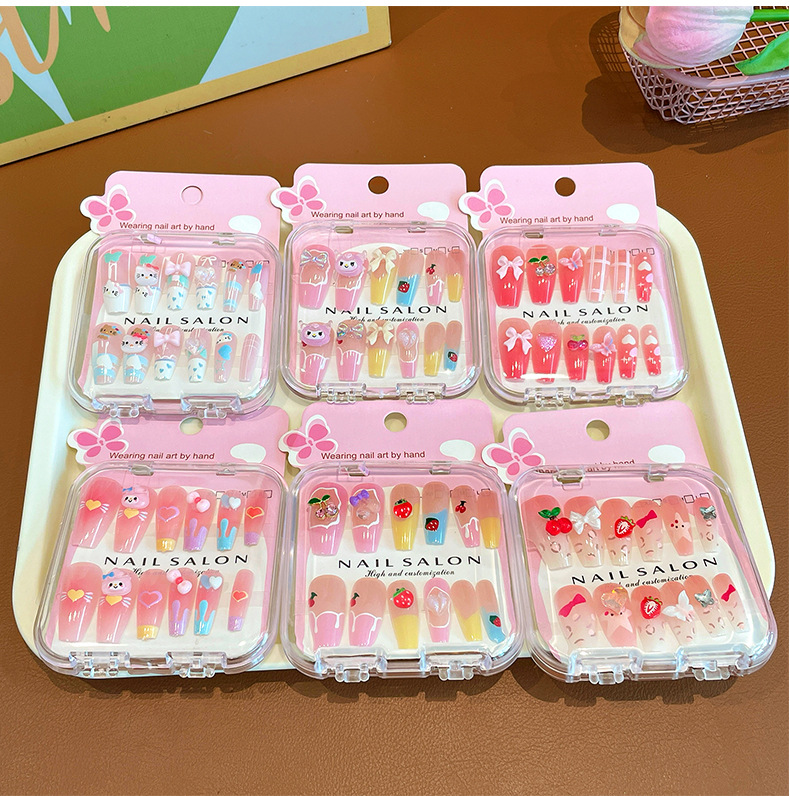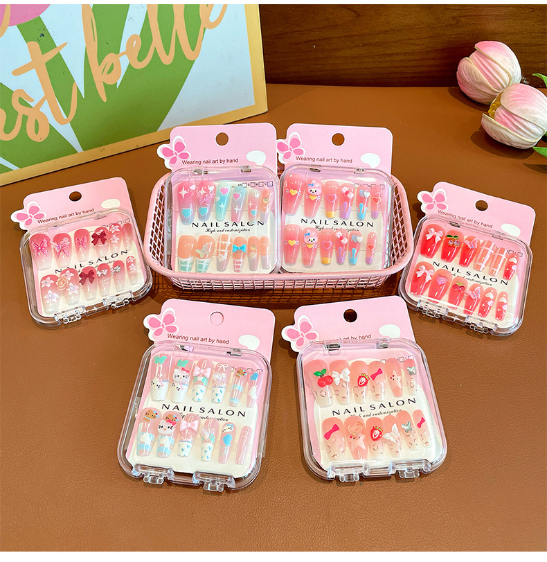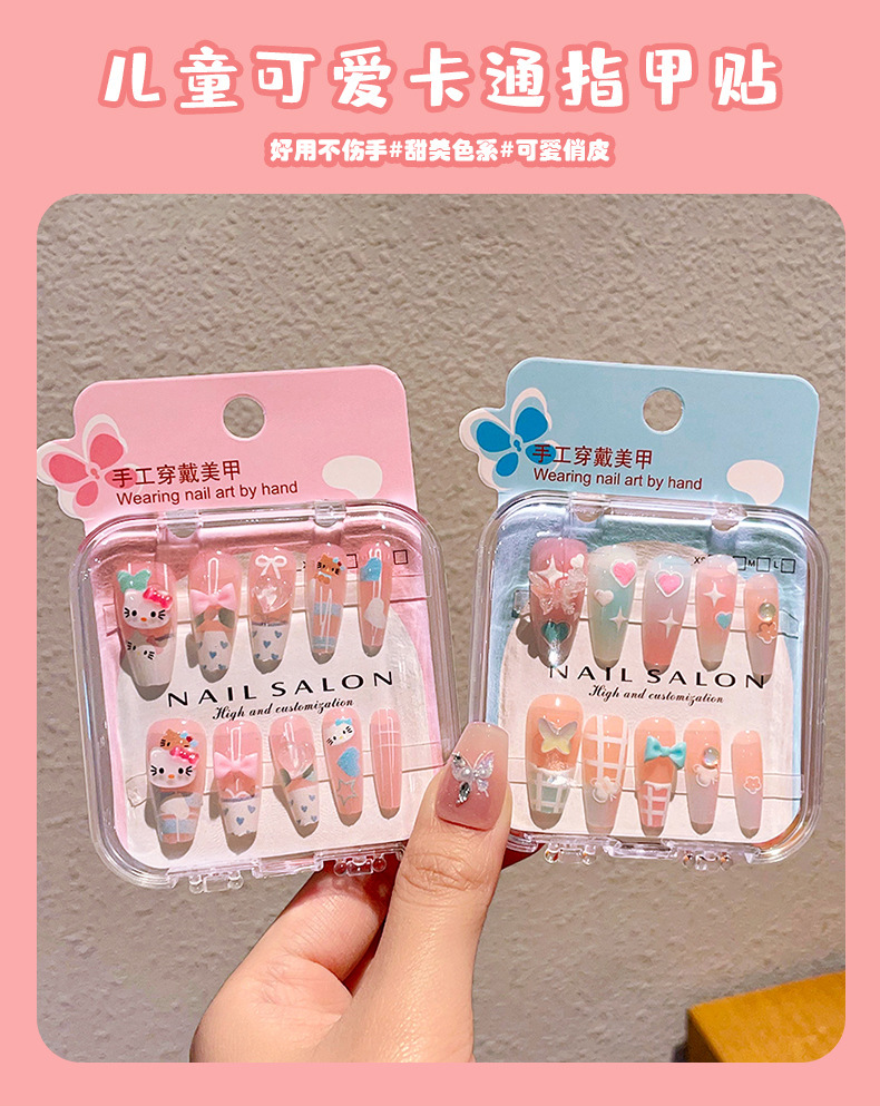 卡通儿童穿戴甲长款显白女童指甲贴2025新款中大童美甲贴儿童贴纸