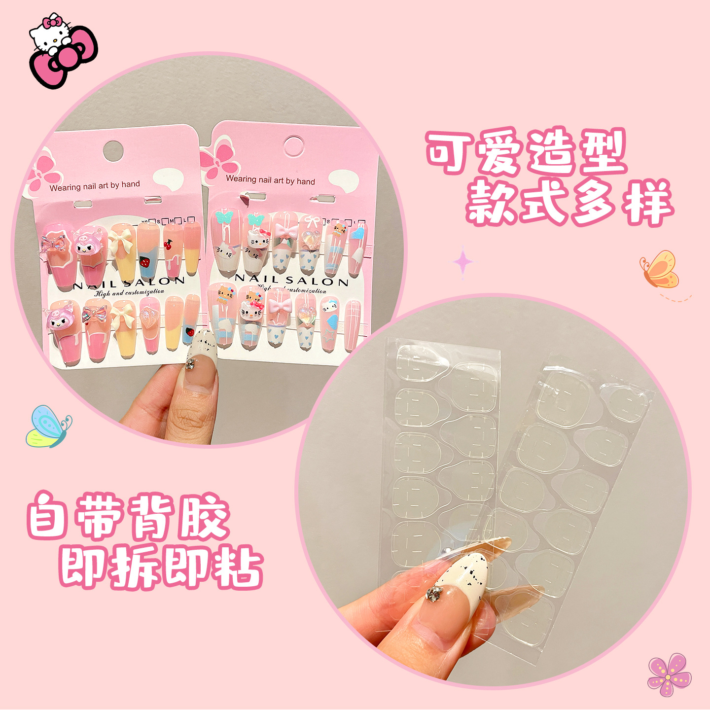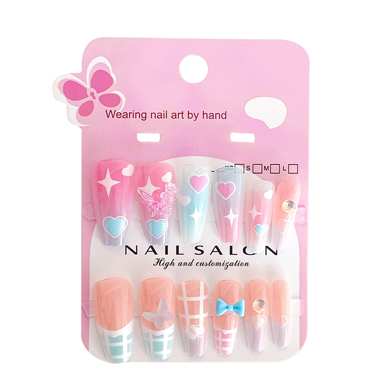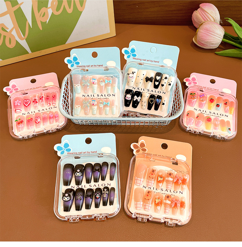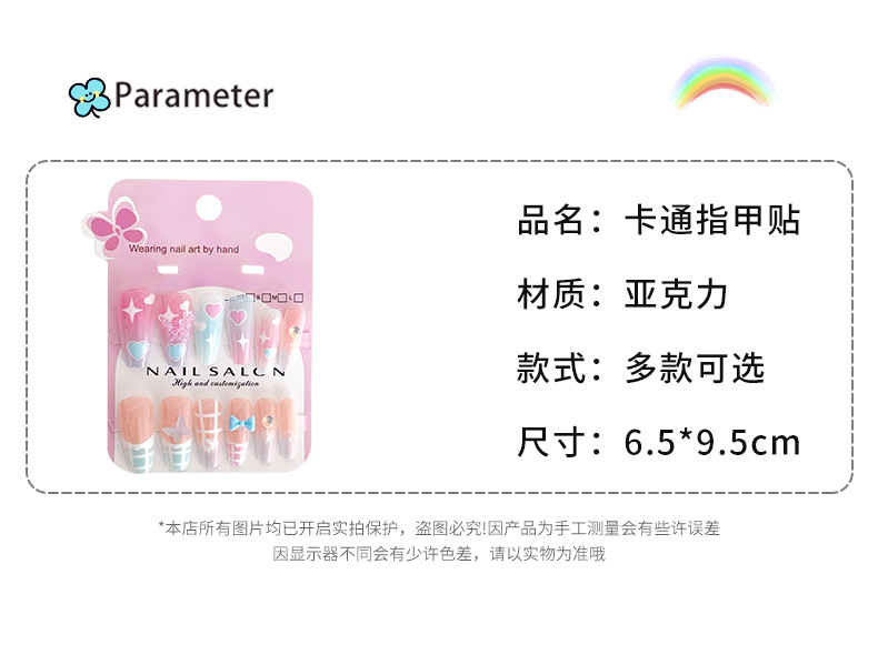 卡通儿童穿戴甲长款显白女童指甲贴2025新款中大童美甲贴儿童贴纸