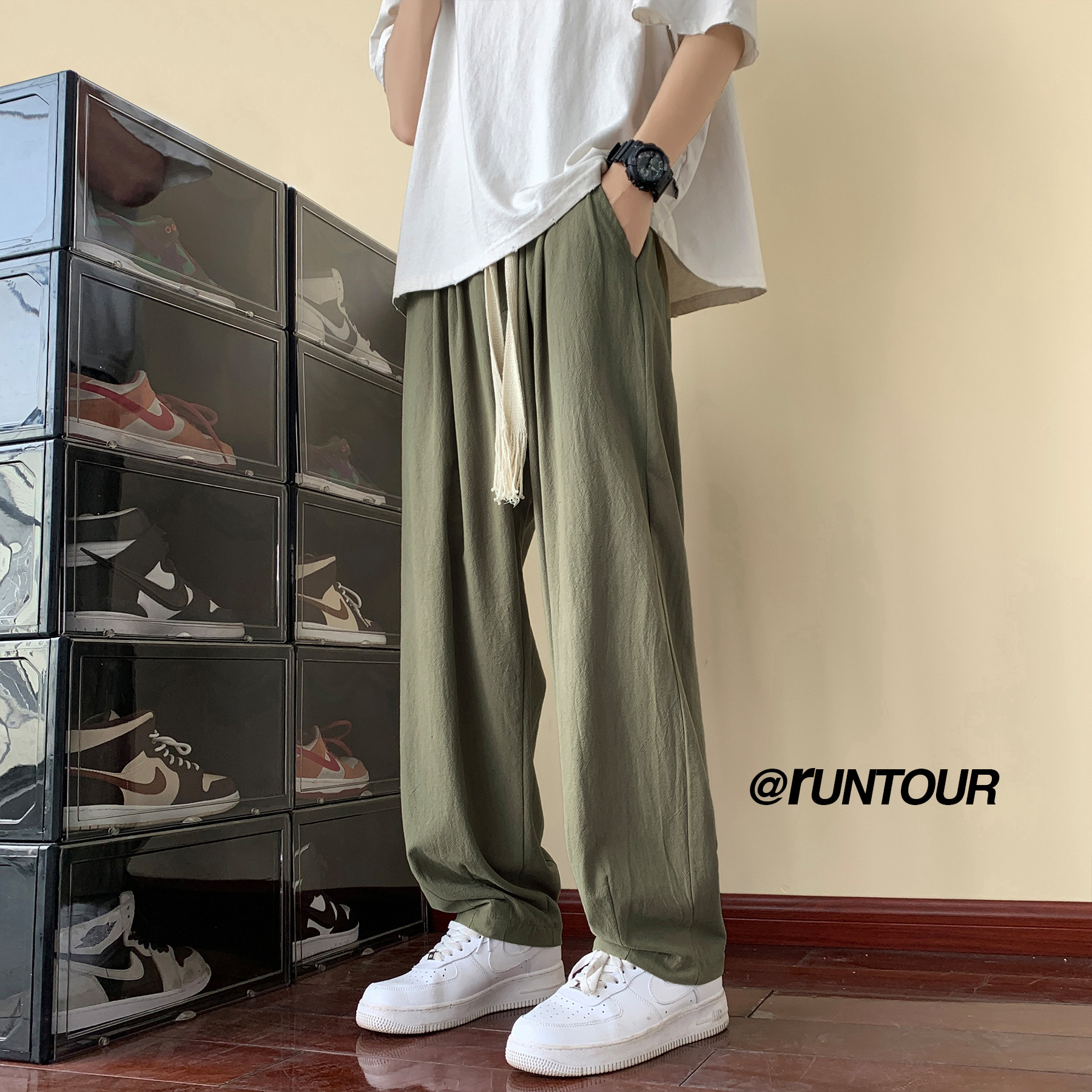 棉麻休闲裤男夏季薄款oversize阔腿宽松裤子美式高街亚麻直筒裤潮