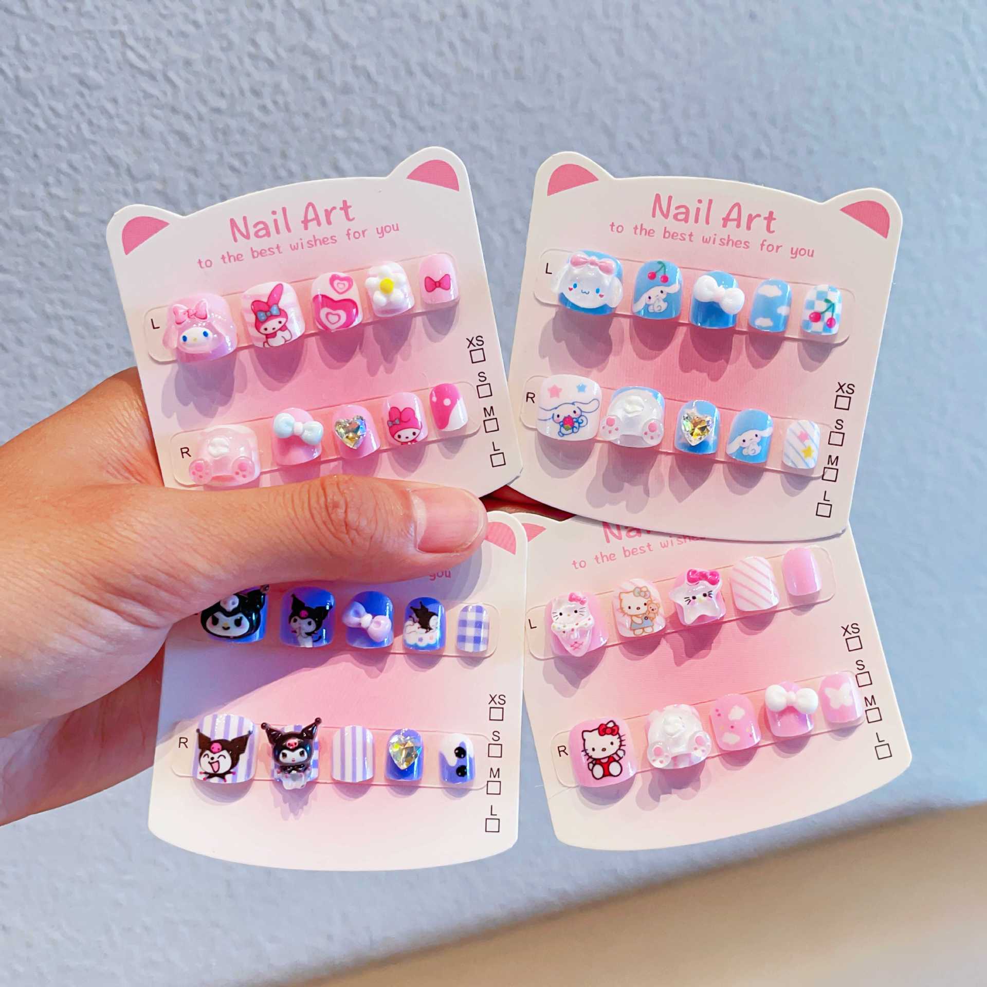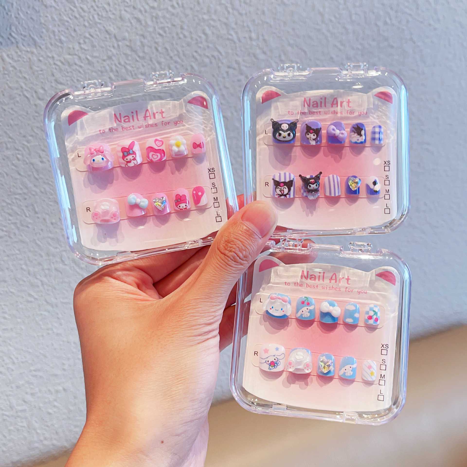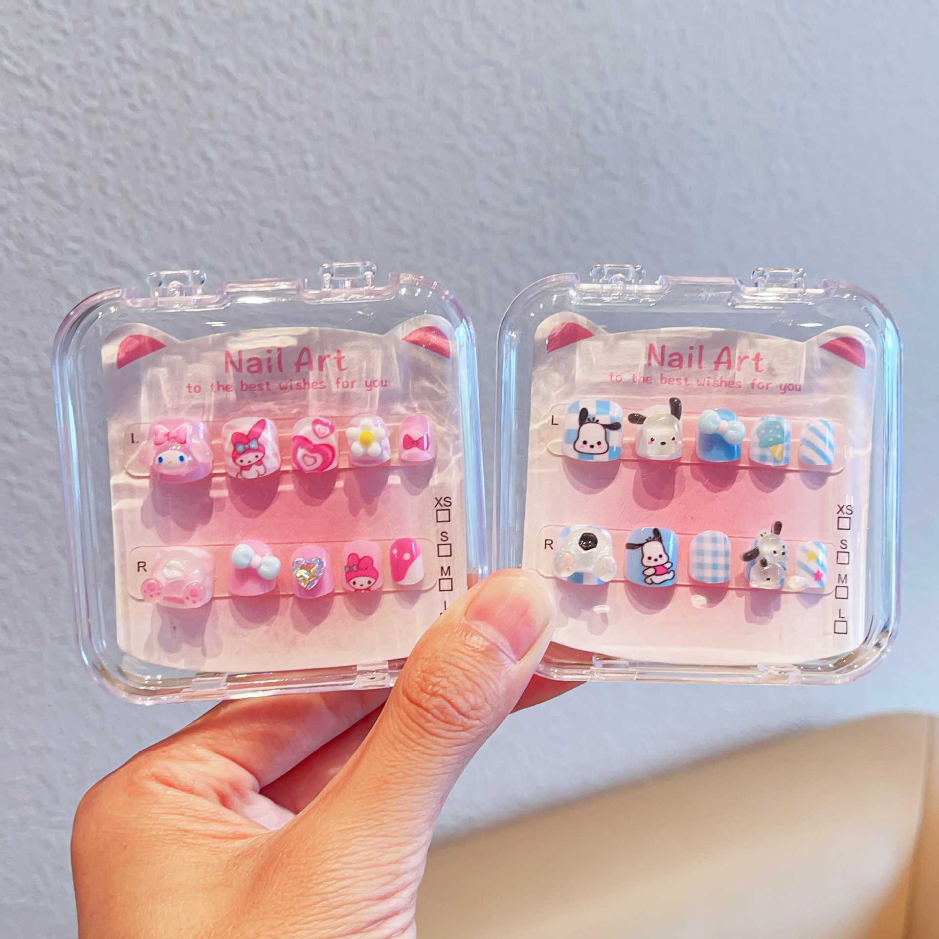 三丽鸥可爱儿童指甲贴卡通粉色穿戴甲带背胶自粘指甲饰品美甲贴