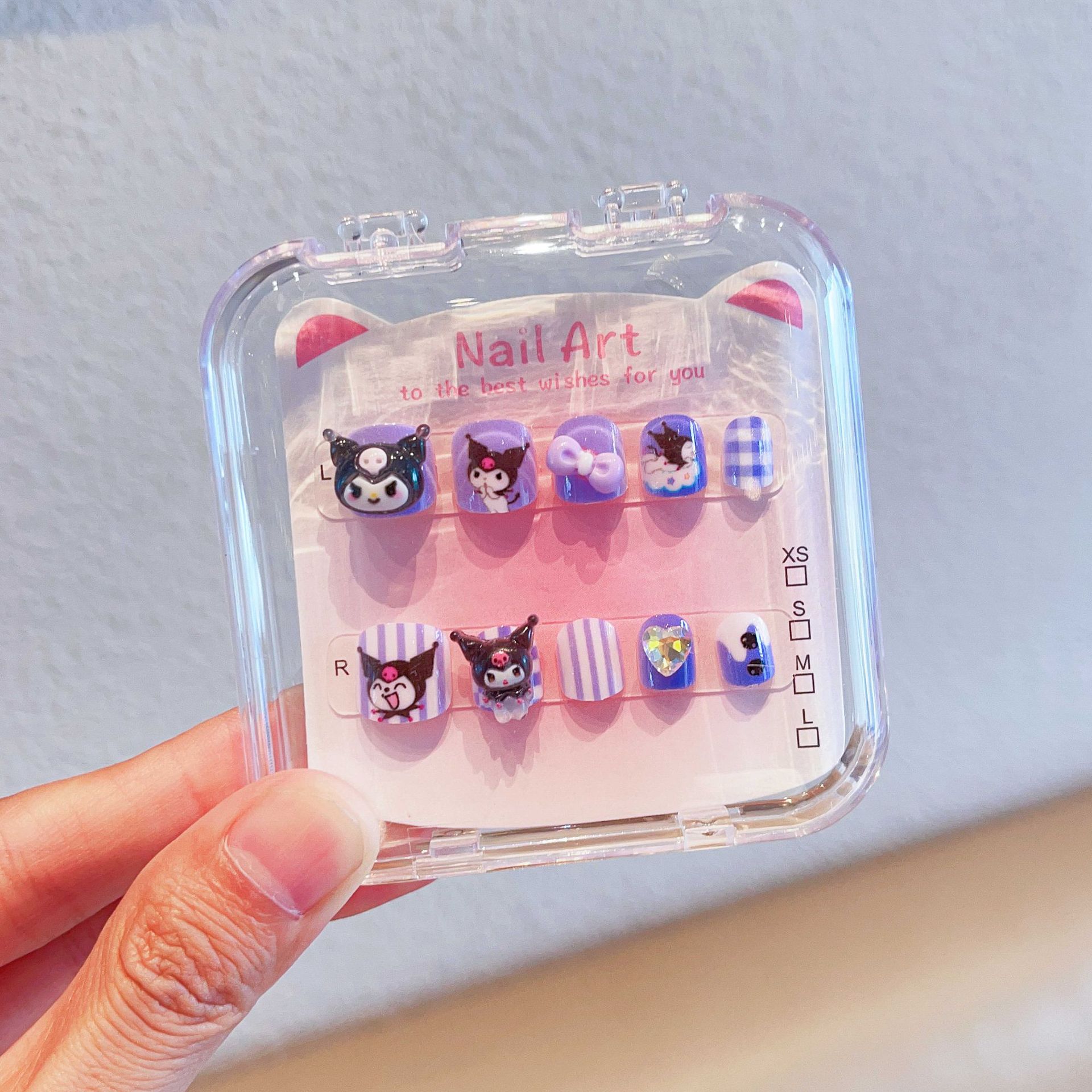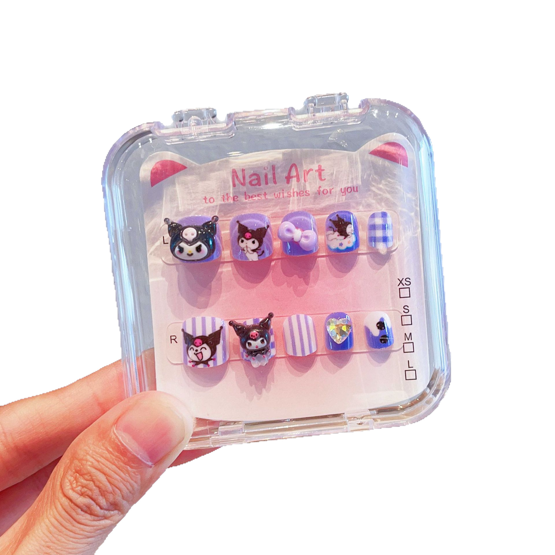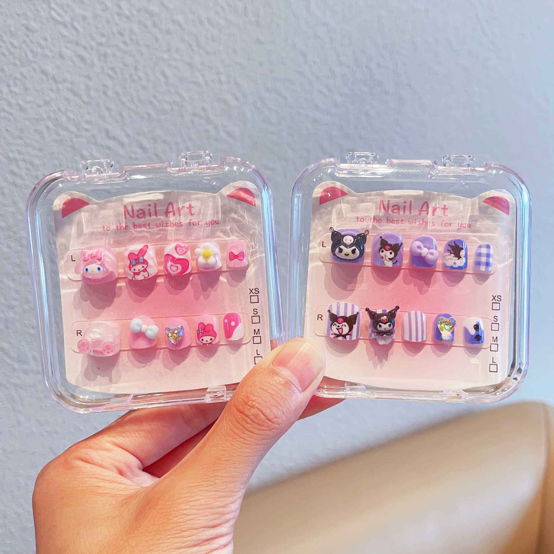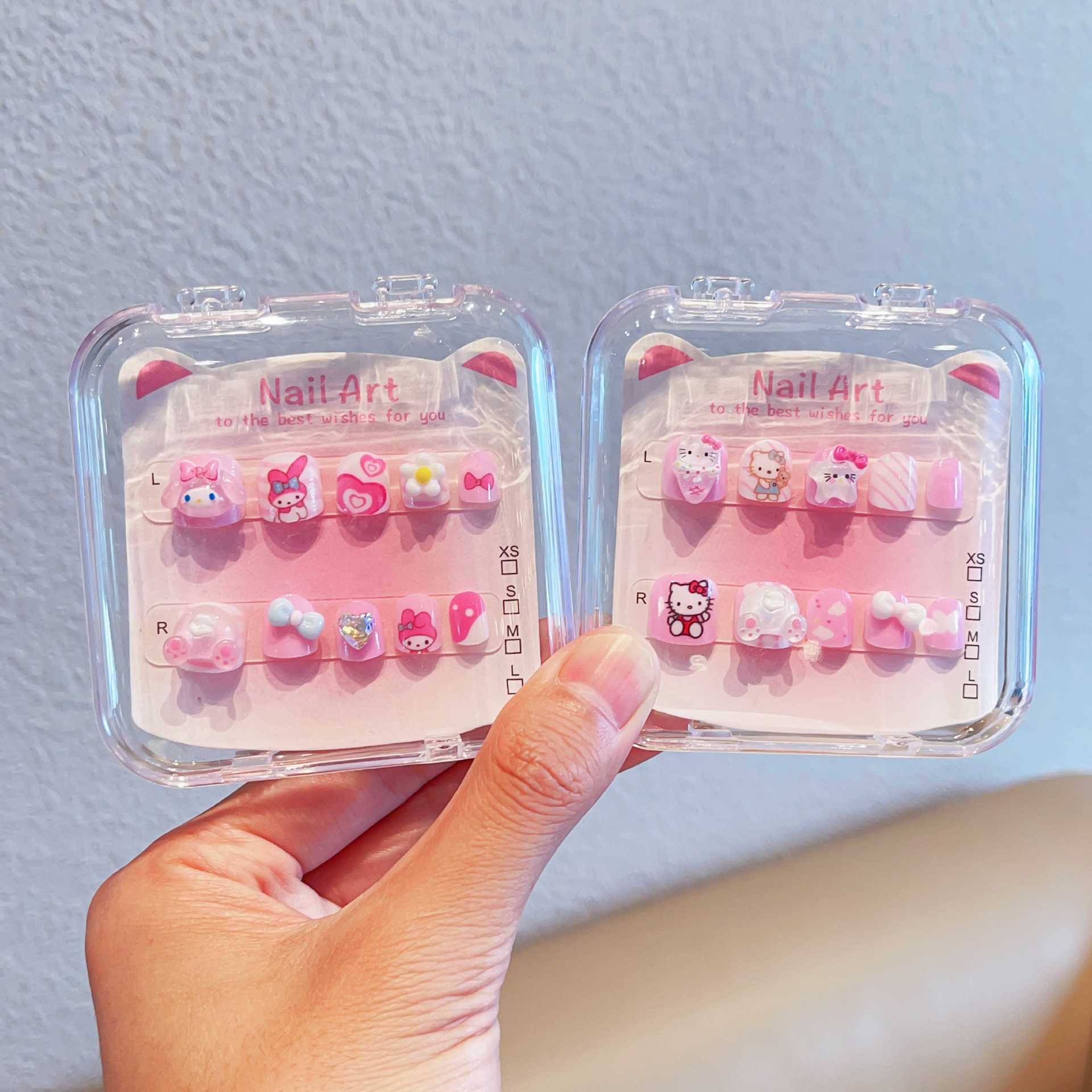三丽鸥可爱儿童指甲贴卡通粉色穿戴甲带背胶自粘指甲饰品美甲贴