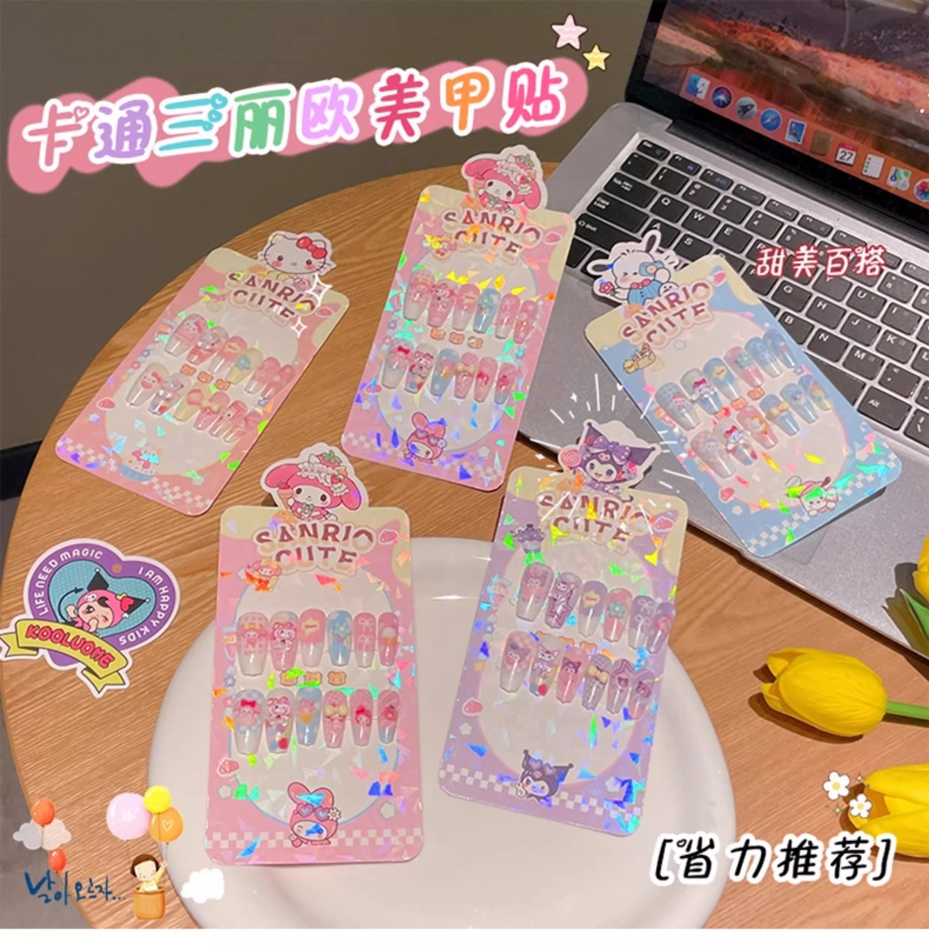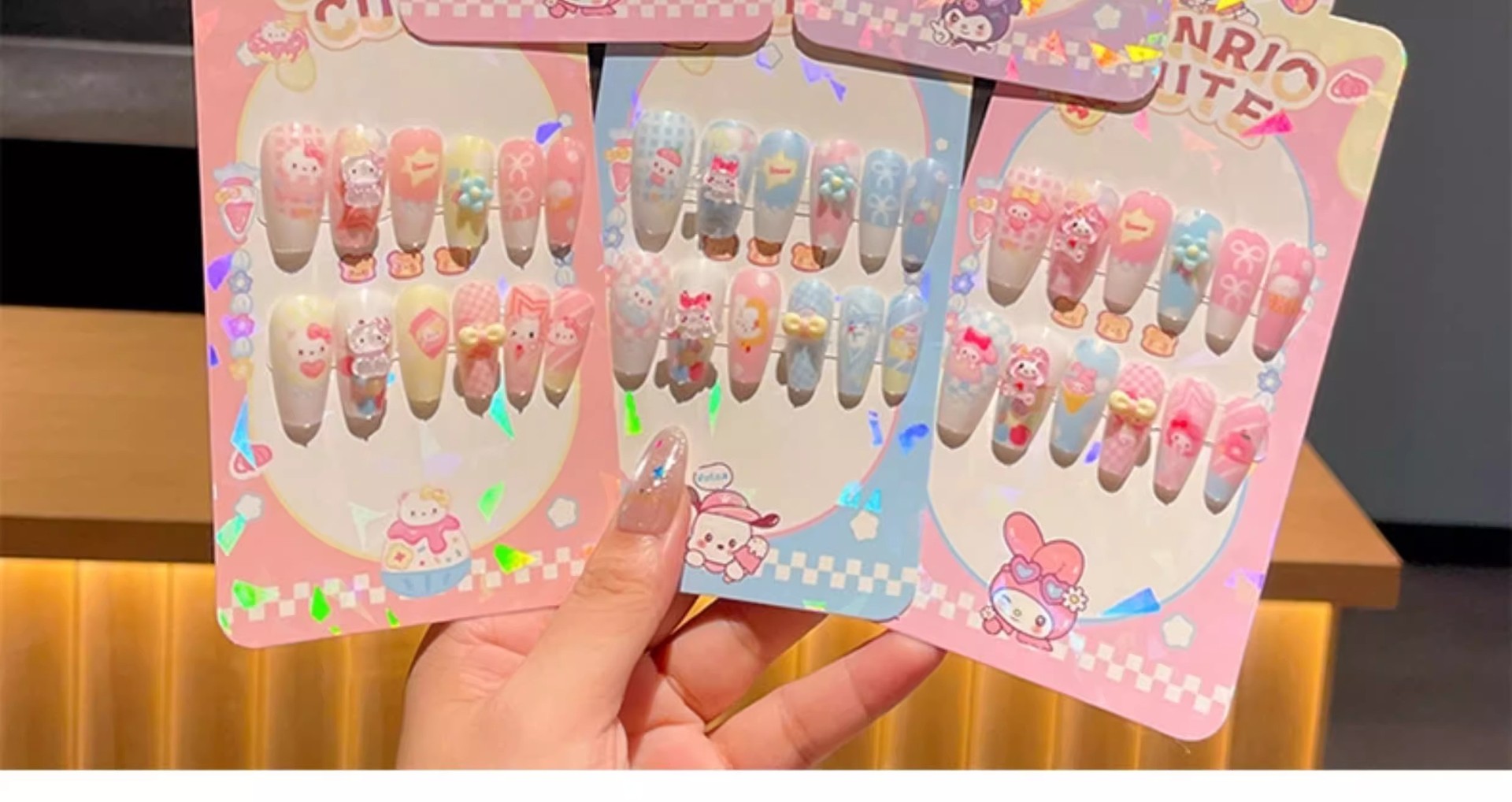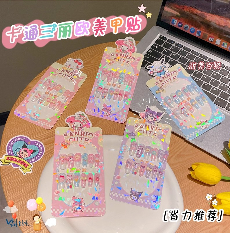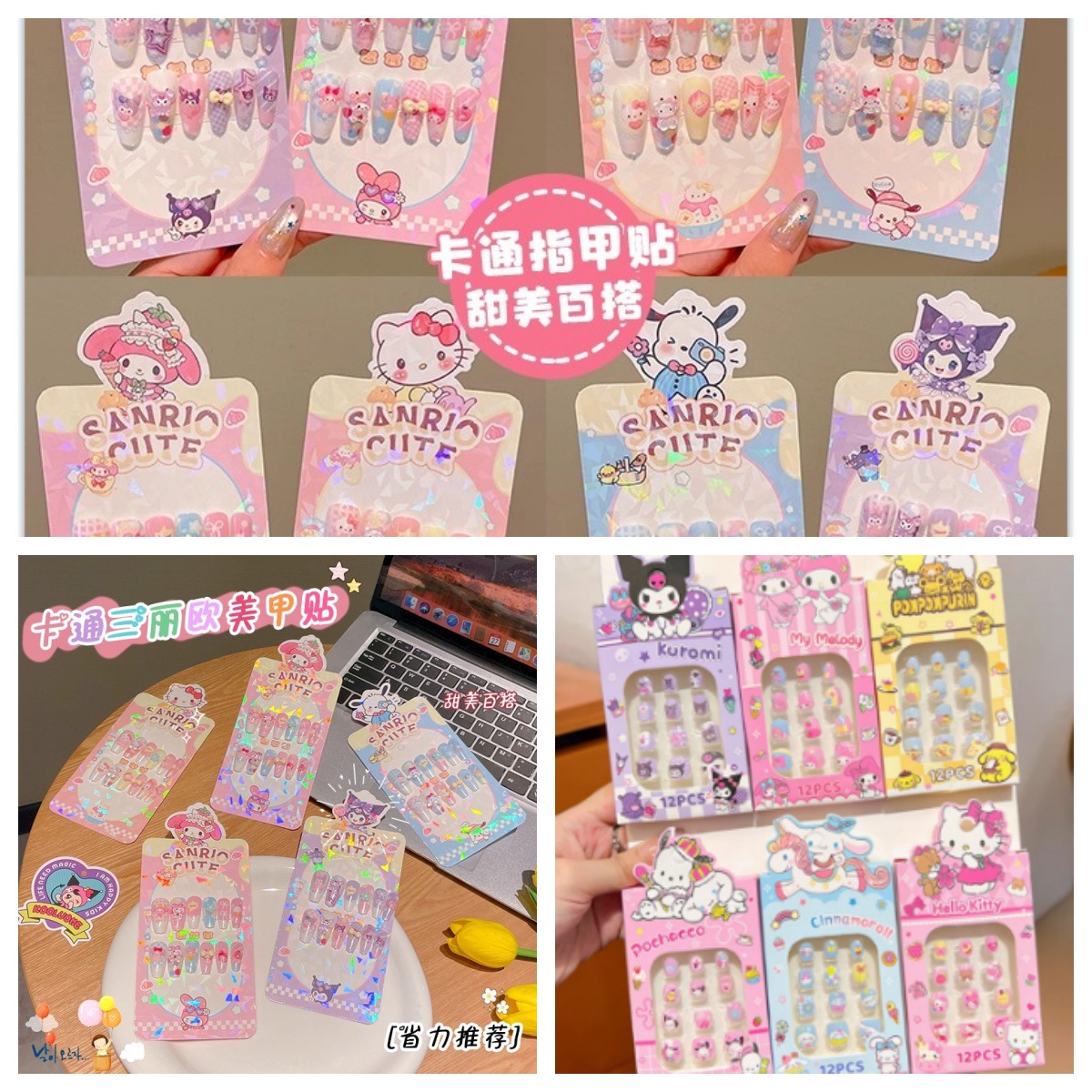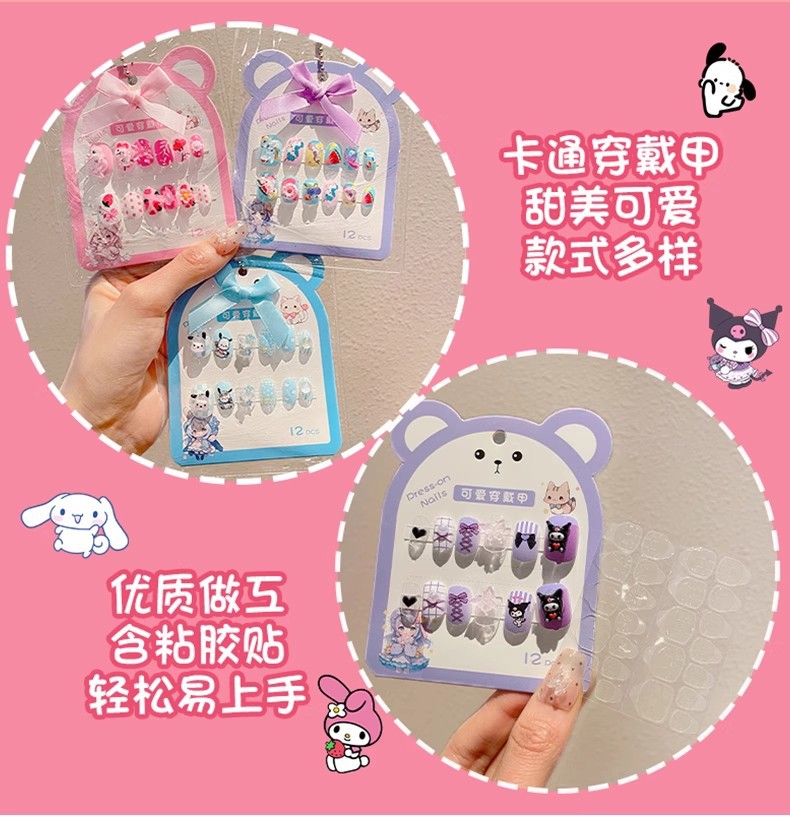 三丽鸥儿童指甲贴女孩萌趣美甲指甲片甜美甲片小朋友穿戴甲
