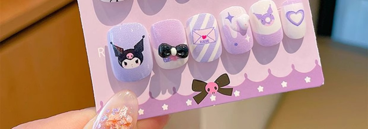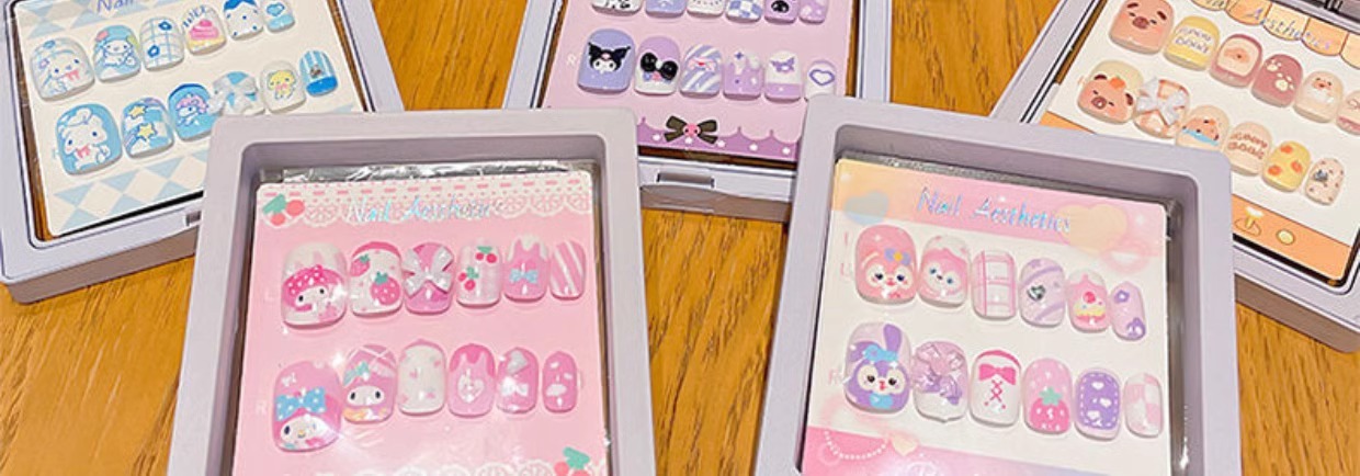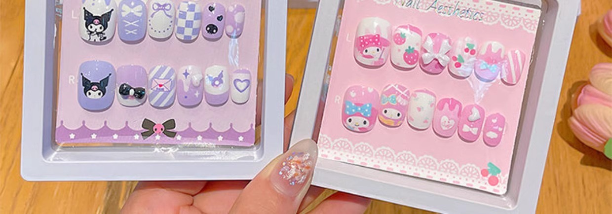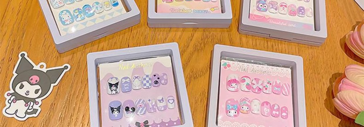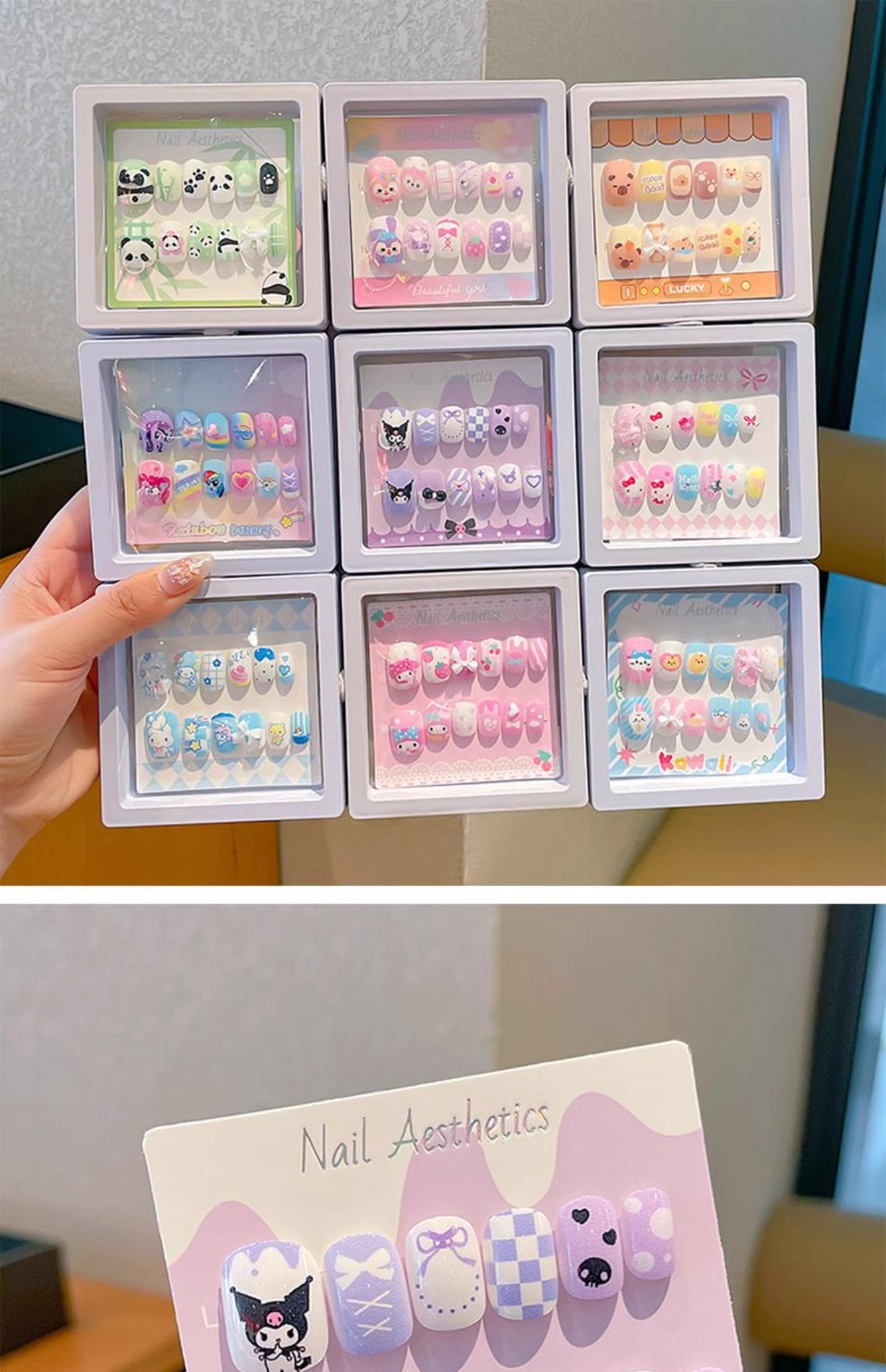 库洛米儿童卡通指甲贴小女孩宝宝穿戴甲片贴纸果冻胶可拆卸美甲贴