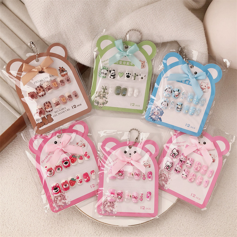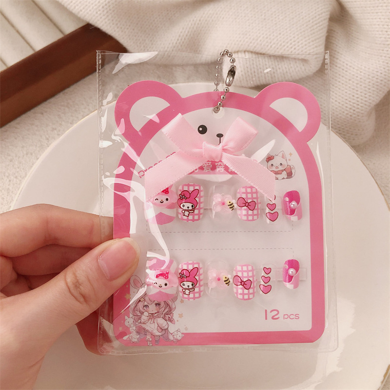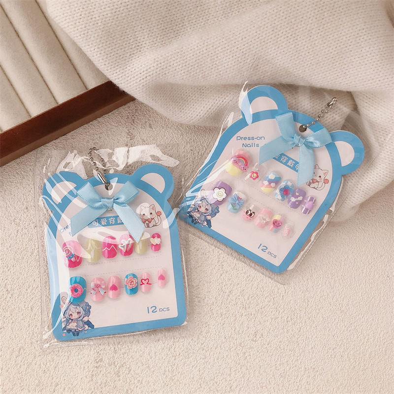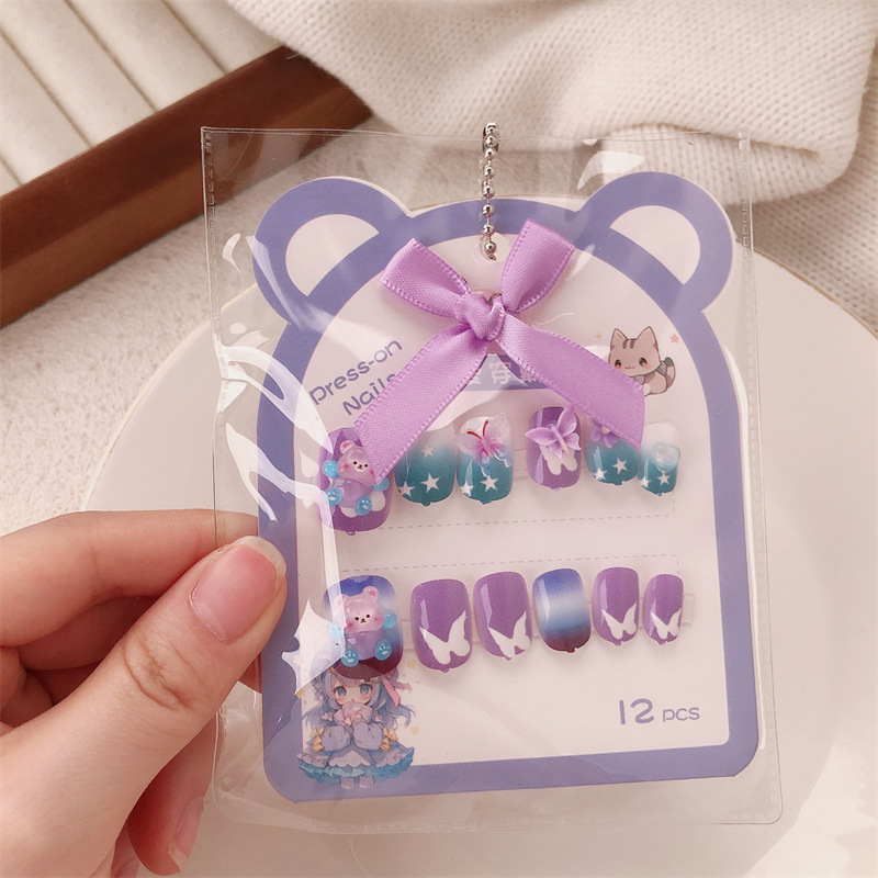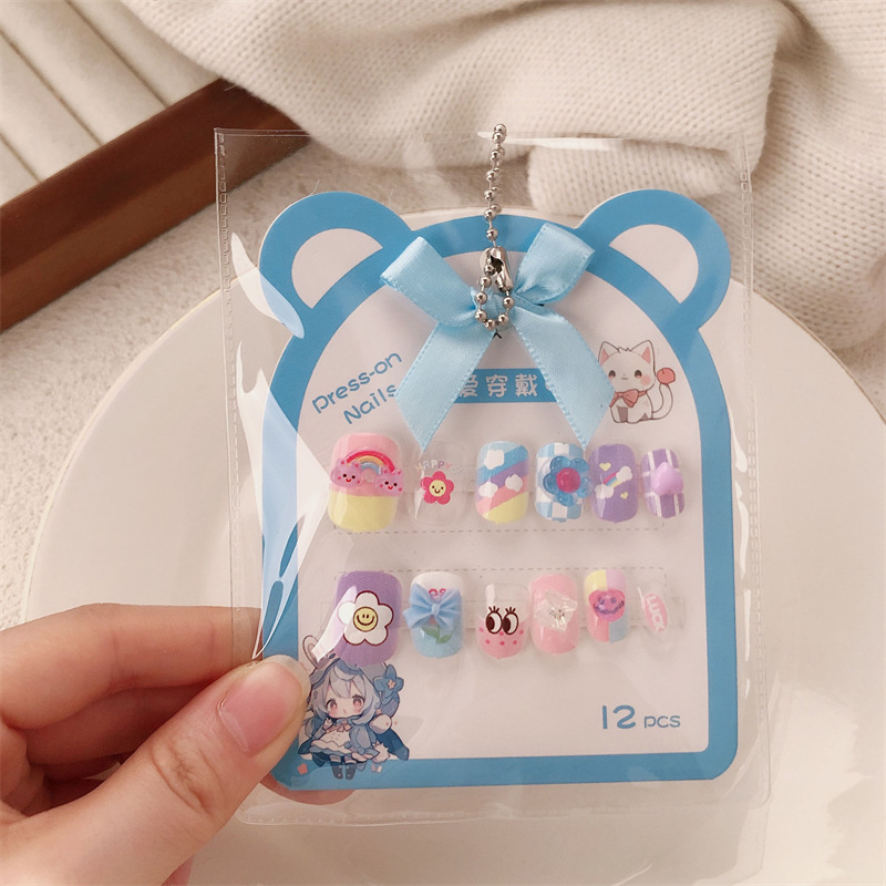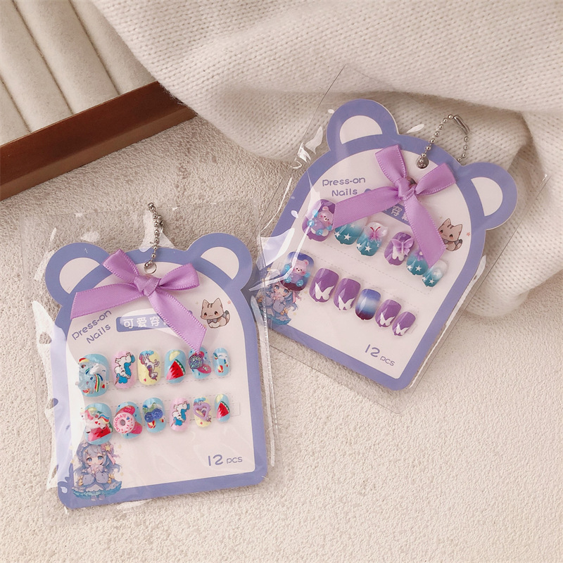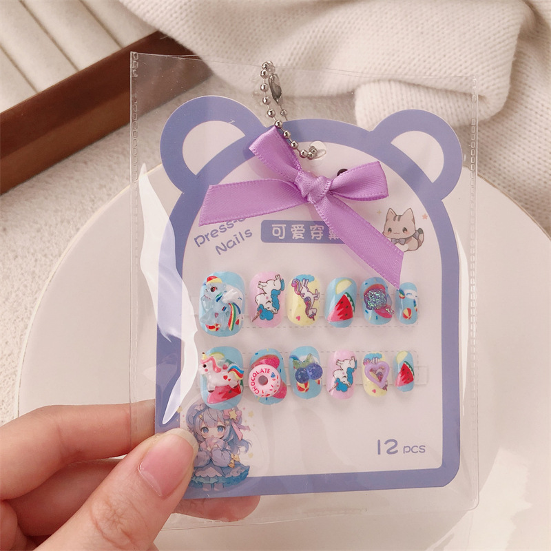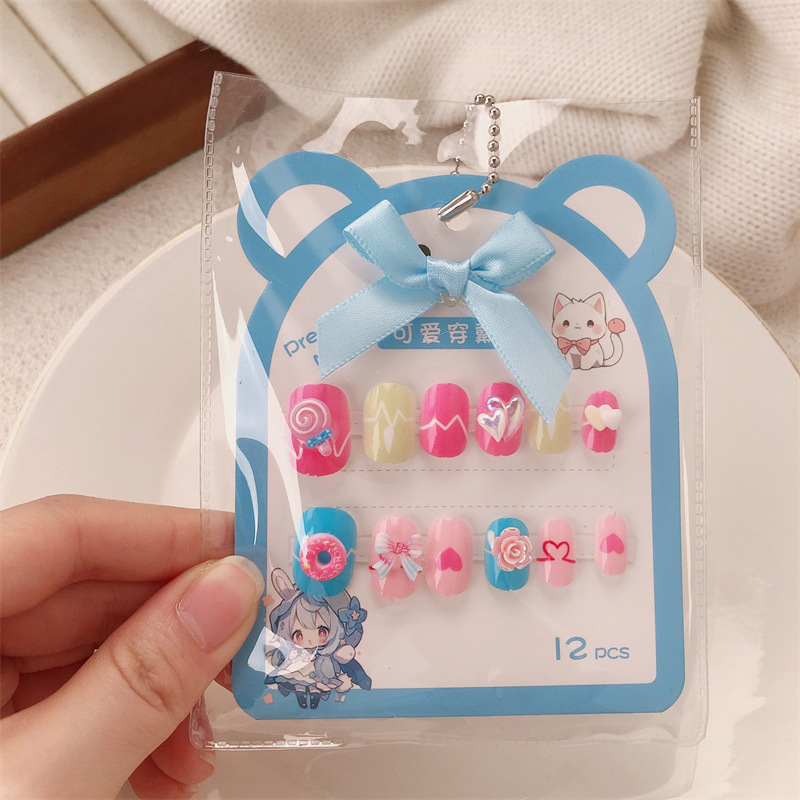 女童穿戴手饰美甲贴片儿童美甲可爱穿戴甲可重复使用可拆卸美甲