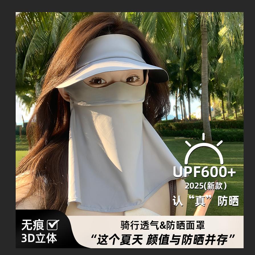 防晒面罩女夏季新款防紫外线护脸口罩冰丝遮阳护颈帽子一体脸基尼