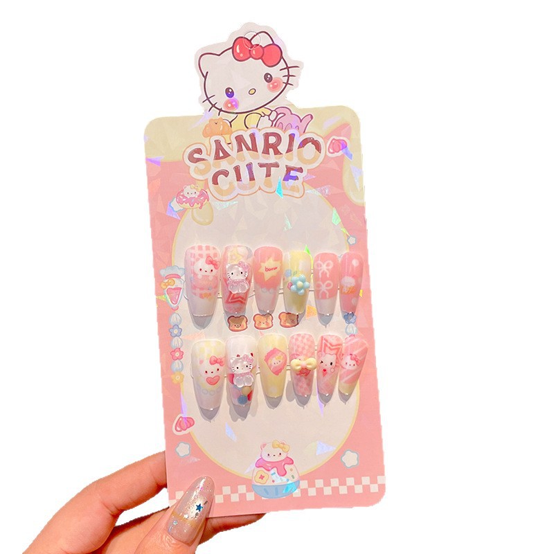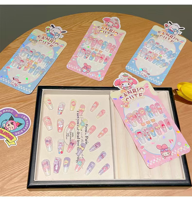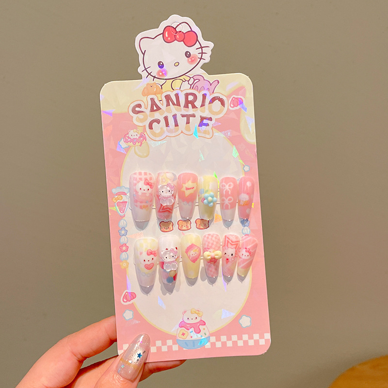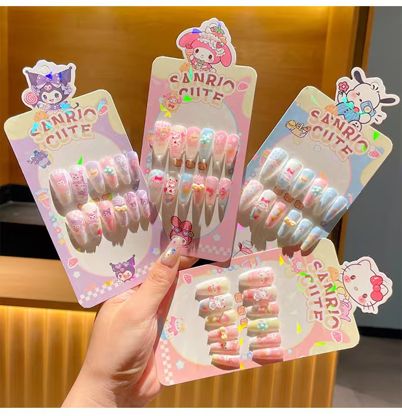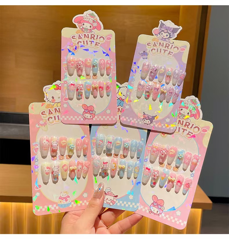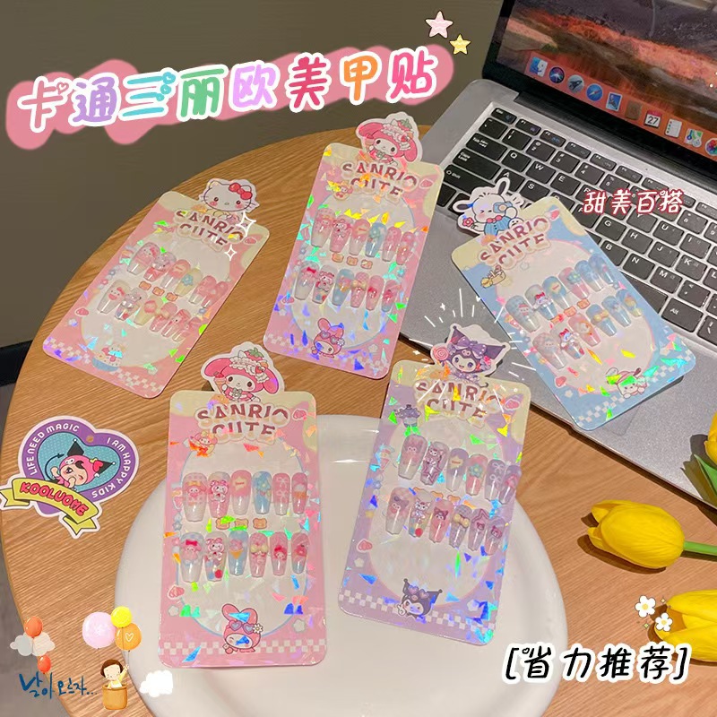 卡通儿童穿戴甲长款显白女童指甲贴新款美甲贴可拆卸美甲贴