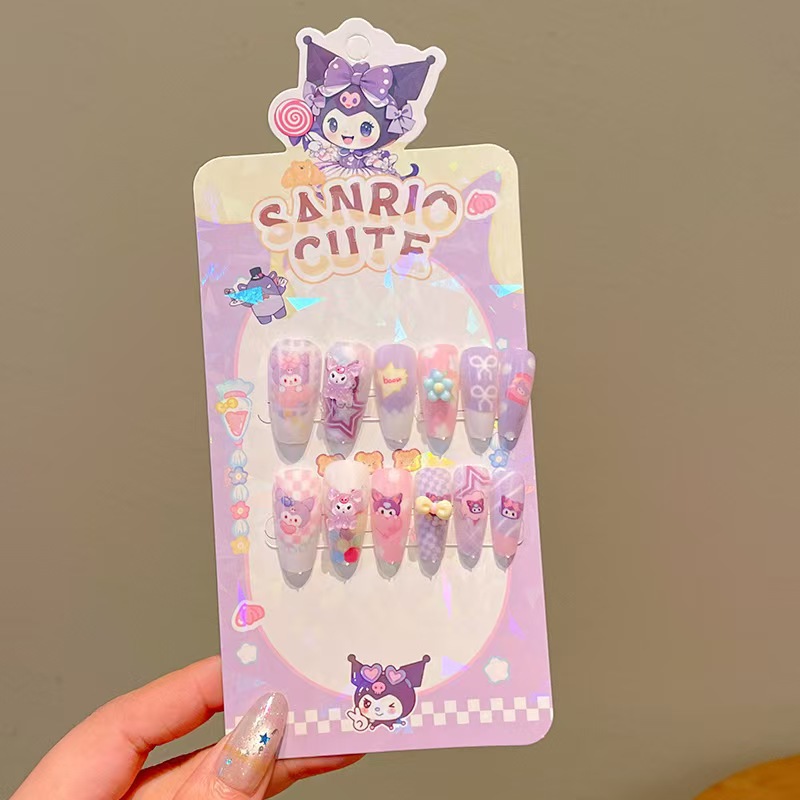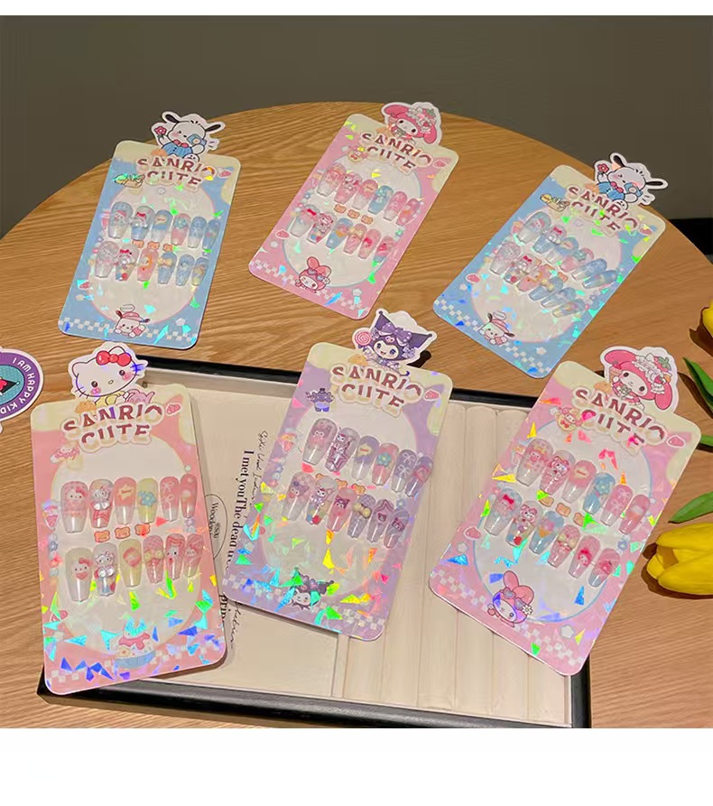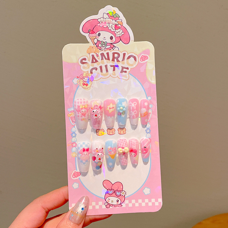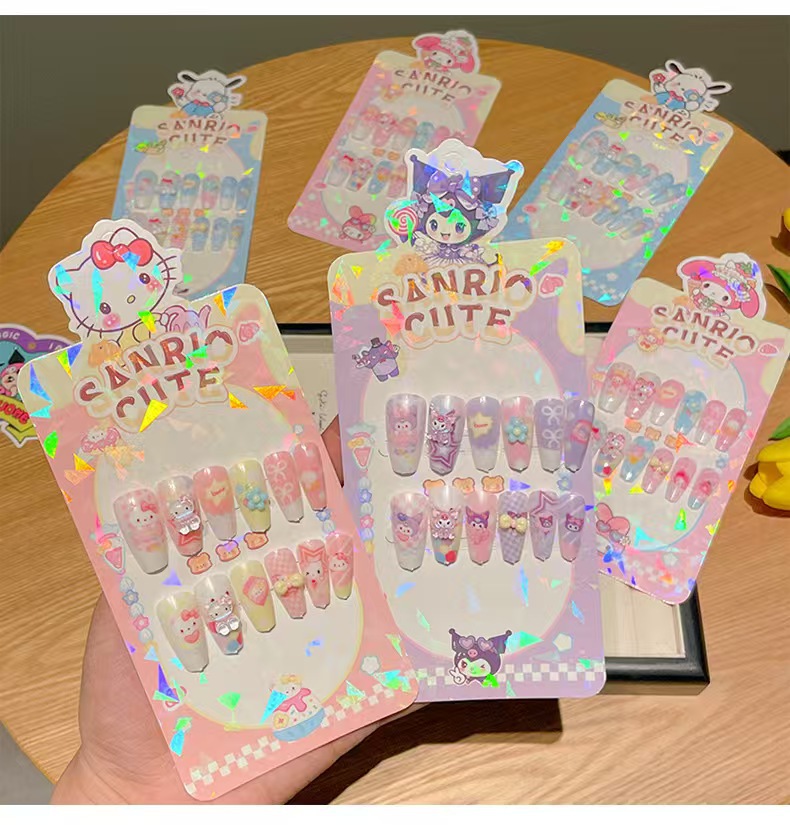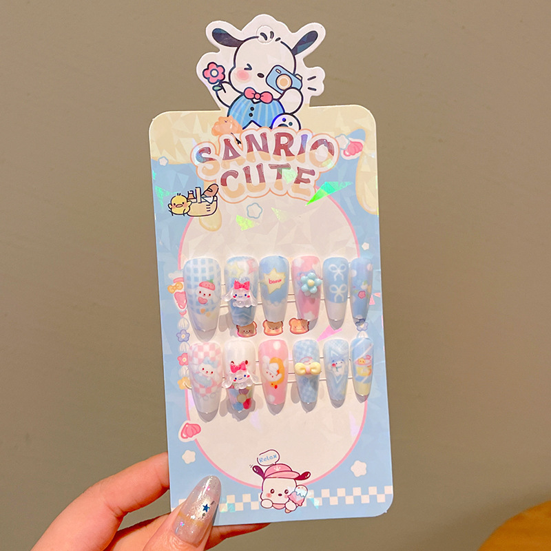 卡通儿童穿戴甲长款显白女童指甲贴新款美甲贴可拆卸美甲贴