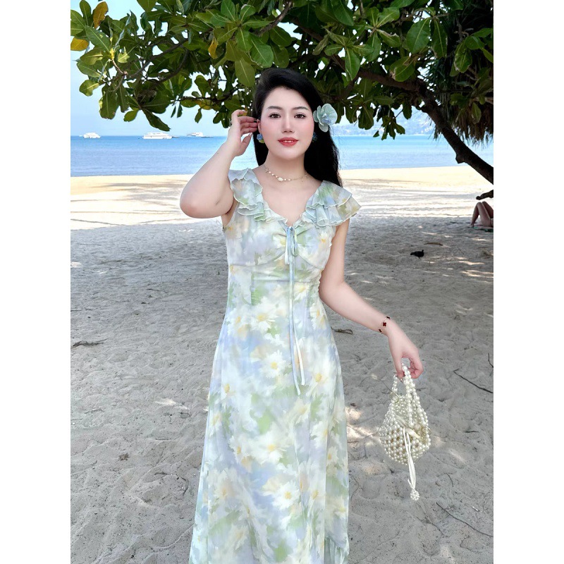 大码法式温柔风碎花收腰连衣裙女微胖复古海边度假风气质茶歇裙