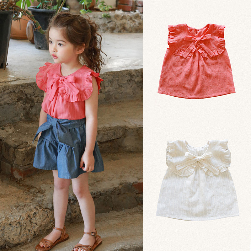 夏季草莓珊韩国款童装女孩子女童系带蝴蝶结翻领衬衫