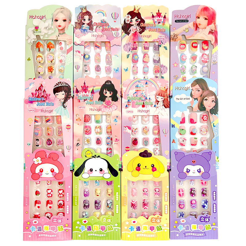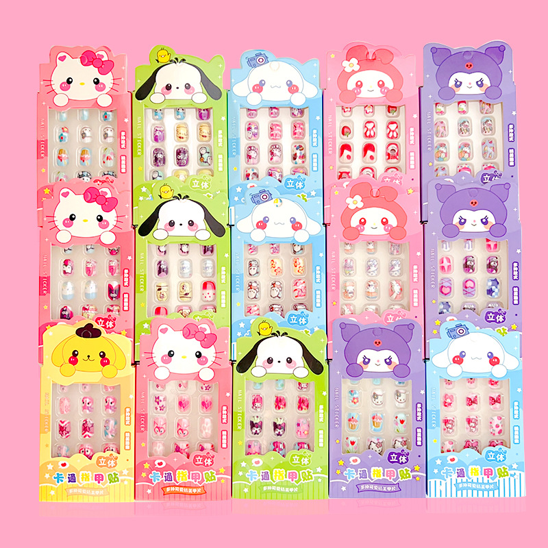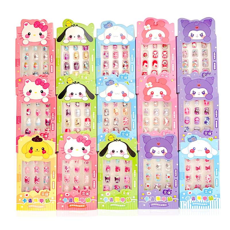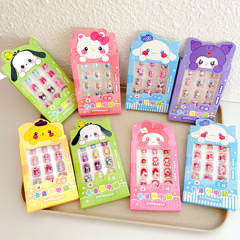 韩版可爱卡通儿童穿戴甲三丽鸥库洛米猫咪假指甲3D立体儿童美甲