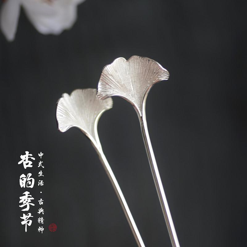 杏簪叶墨镀白金色簪子发饰古典汉服配饰金步摇古风发簪发饰杏簪子