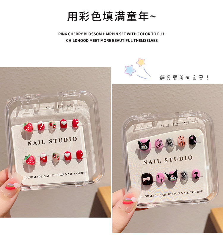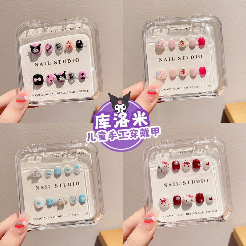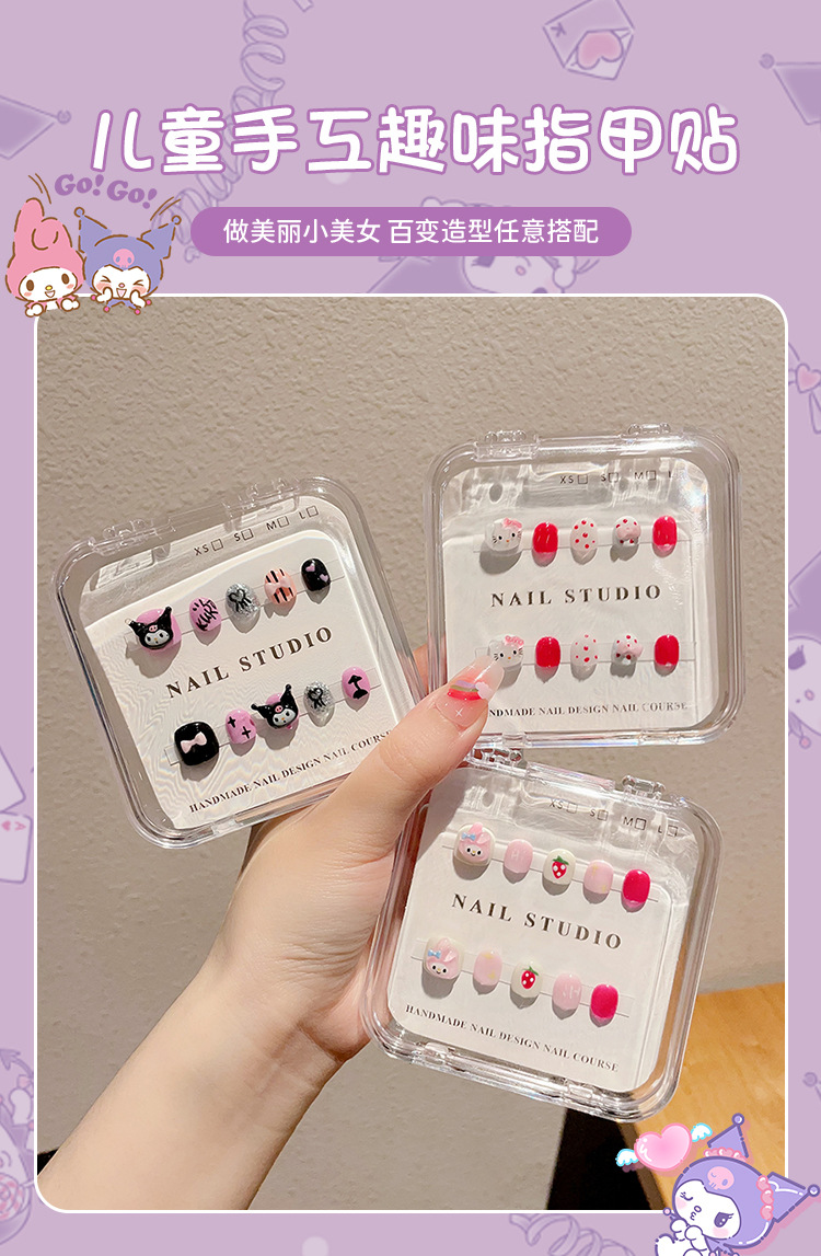 新款儿童指甲贴穿戴甲可拆卸美甲贴库洛米可爱防水玩具女孩宝宝女