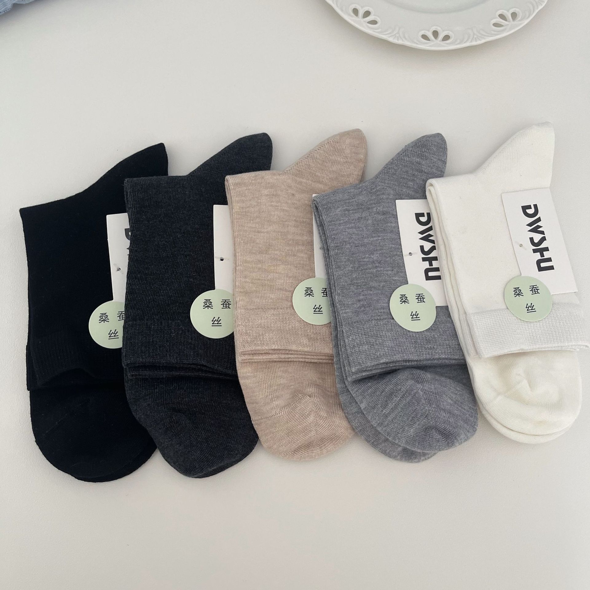 高品质春夏桑蚕丝透气无骨纯色简约男女中筒袜子透气吸汗薄款堆堆