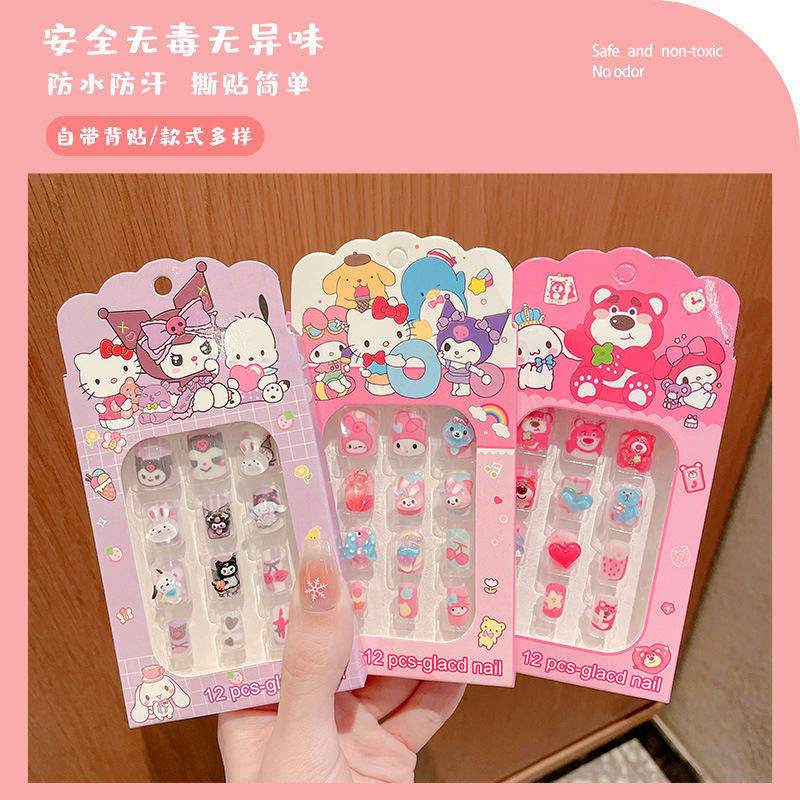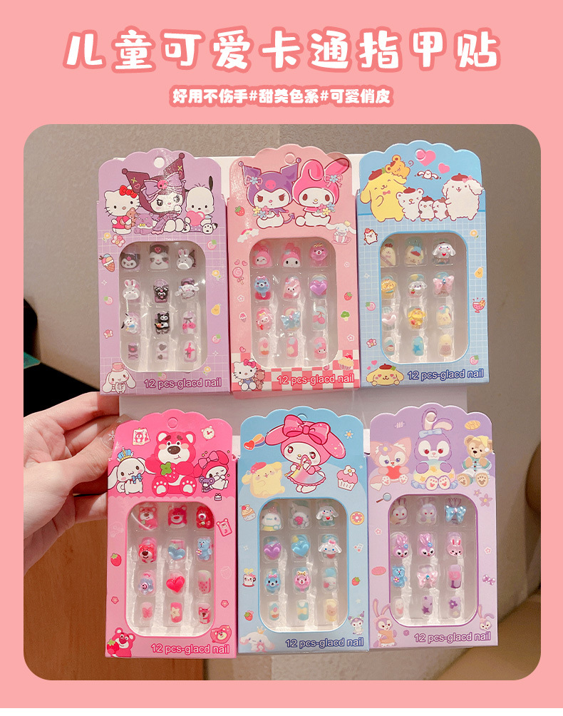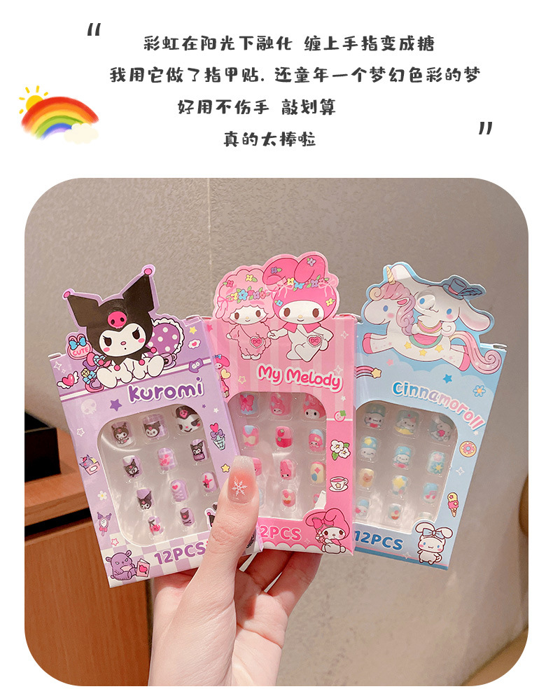 三丽鸥儿童指甲贴女孩美甲贴片女童穿戴甲立体贴钻可爱指甲贴