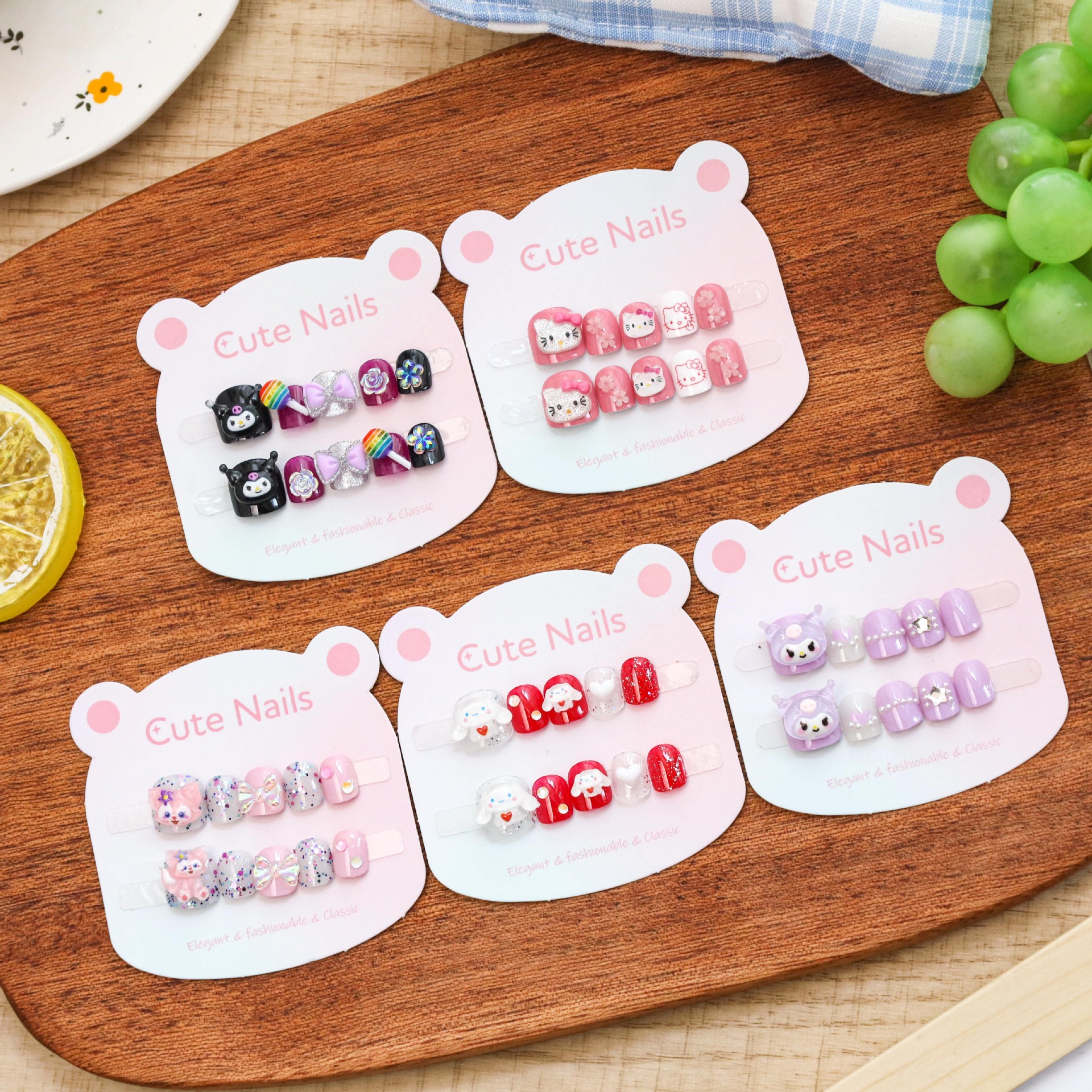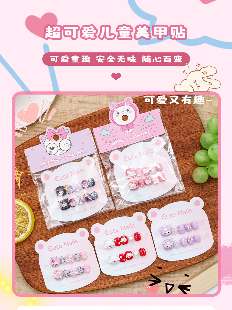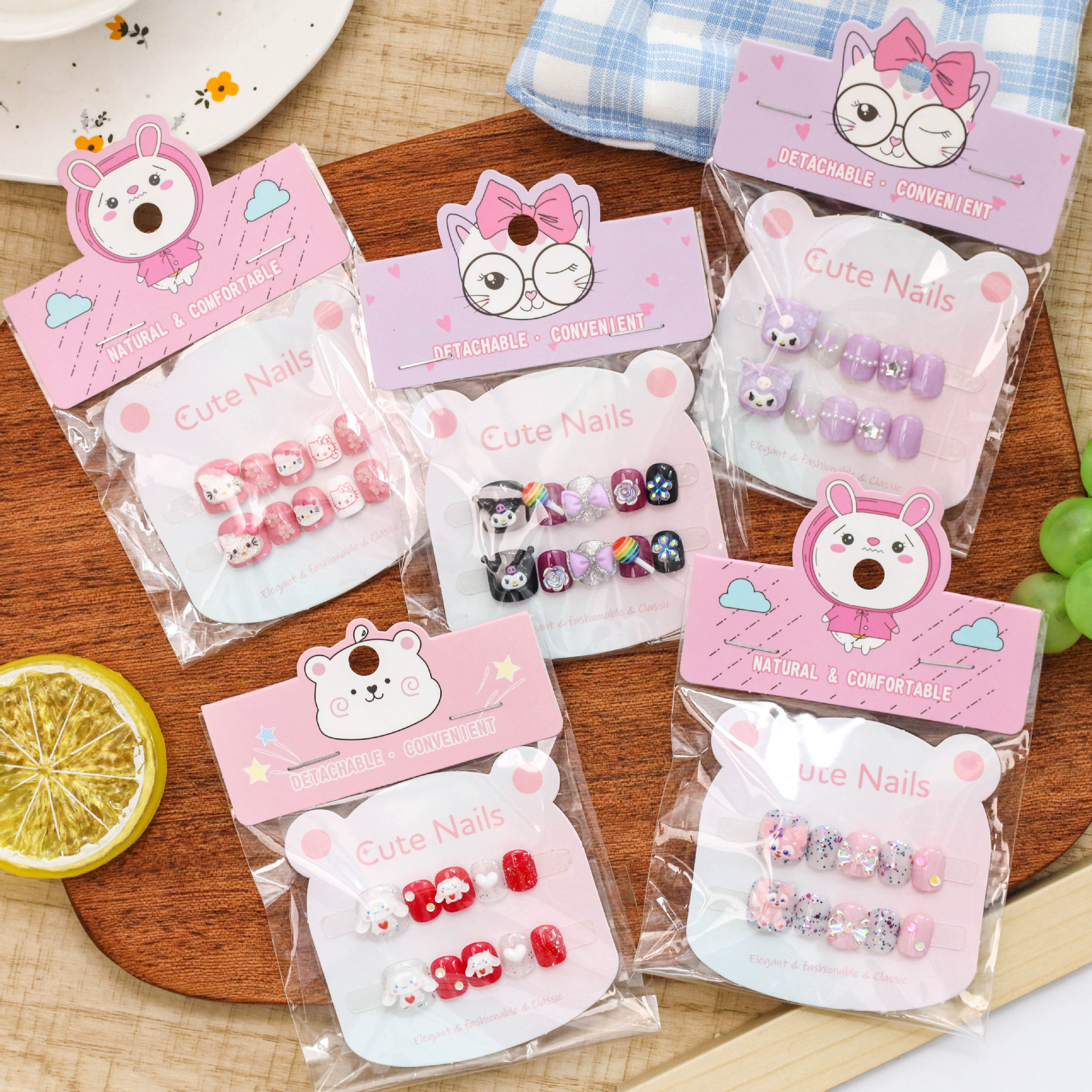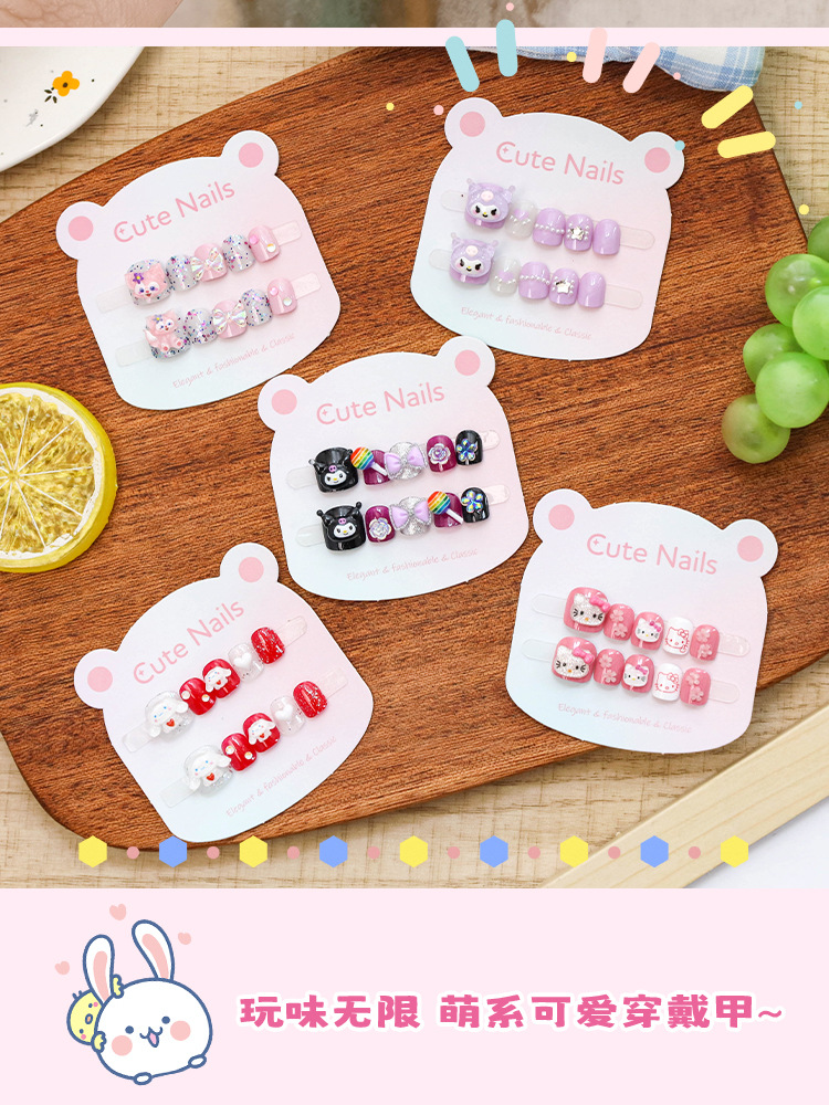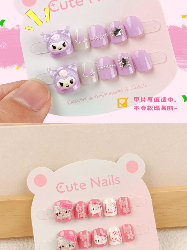 高级感五角星美甲贴卡通库洛米儿童穿戴甲片10片镶钻小童指甲片