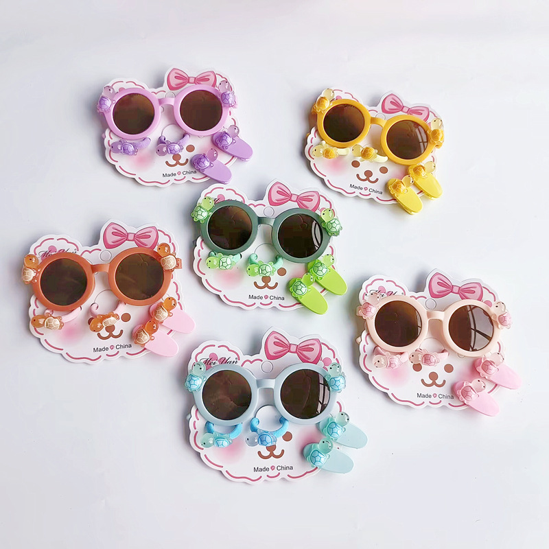 儿童夏小乌龟卡通墨镜发绳套装宝宝可爱5件组合礼品防紫外线眼镜