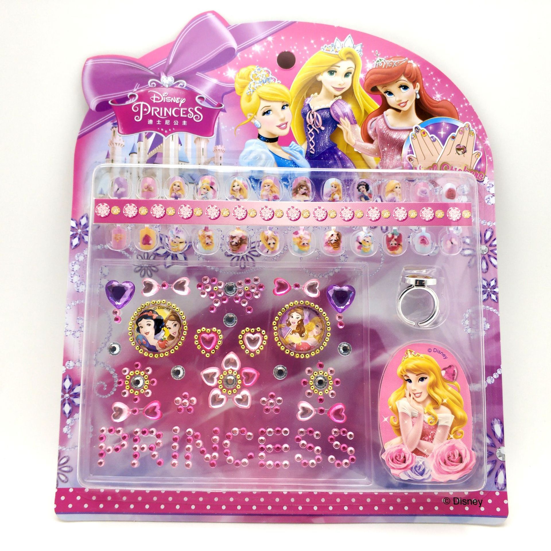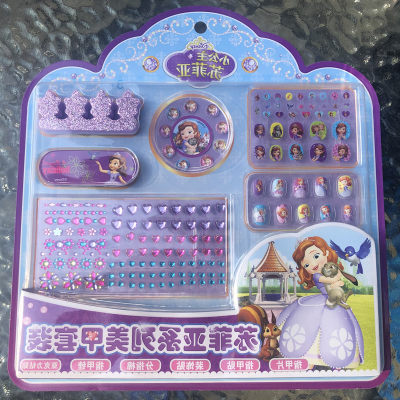 公主系列迷你儿童美甲套装指甲油指甲贴片立体钻石贴纸饰品