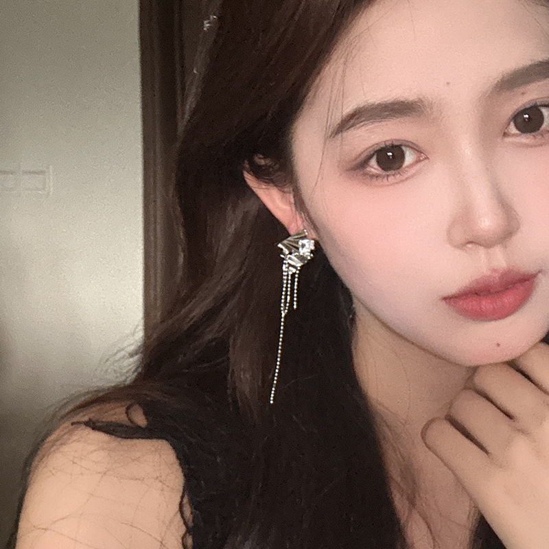 气质冷淡风金属褶皱镶钻流苏耳环小众个性设计感耳饰个性简约耳坠