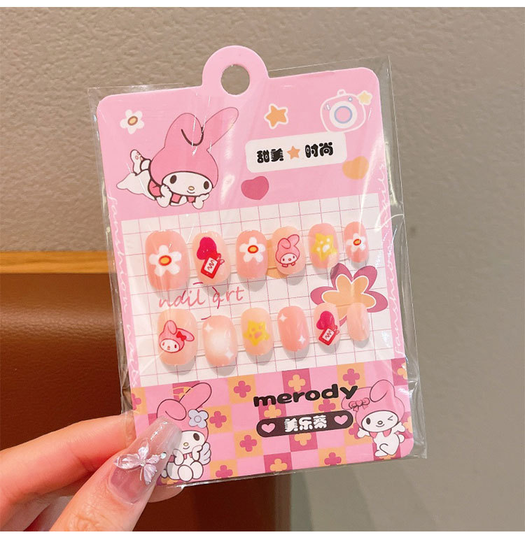 库洛米儿童美甲女孩指甲贴片女童甜美果冻胶可拆卸穿戴甲卡装