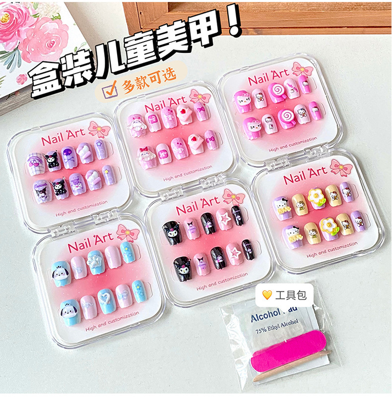 盒装儿童美甲卡通可爱三丽鸥女童穿戴甲贴纯手工女孩库洛米指甲贴
