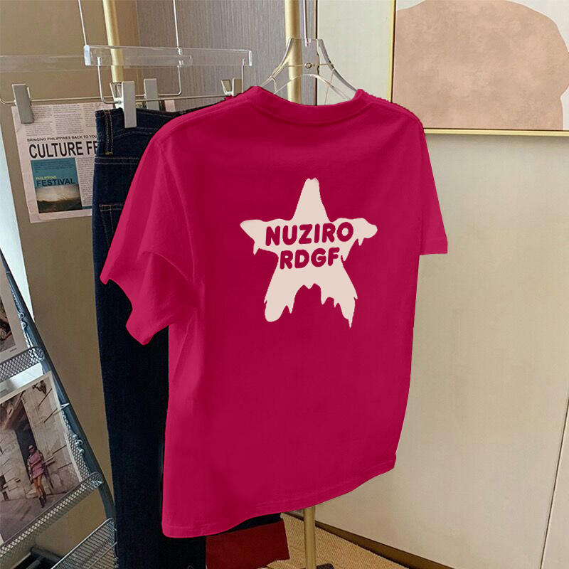 2025春季新款火龙果色纯棉短袖t恤女宽松百搭洋气印花上衣打底衫